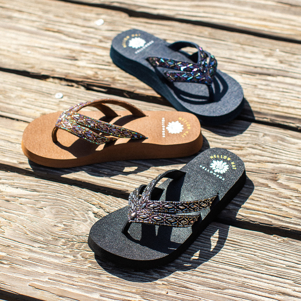 Mellow Mat™ sandals feature resilient impact-reducing footbeds inspired by yoga mats, with all the same style and charm as our Signature Yellow Box Collection.