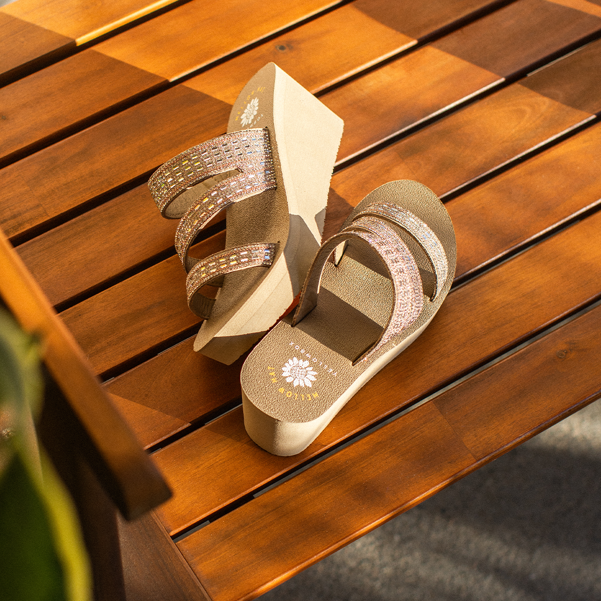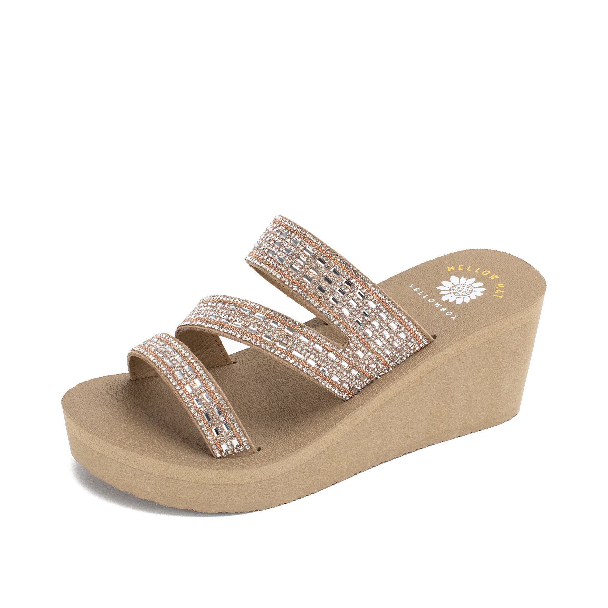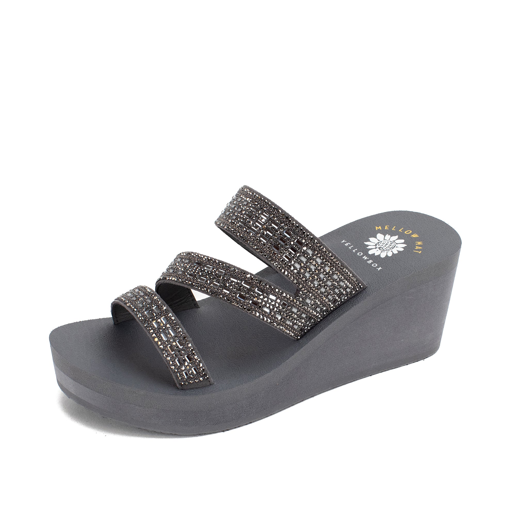 WITLEY guarantees non-stop compliments with its captivating sparkling inset straps. This wedge sandal from our Mellow Mat™ collection features a slow rebound contoured footbed.
