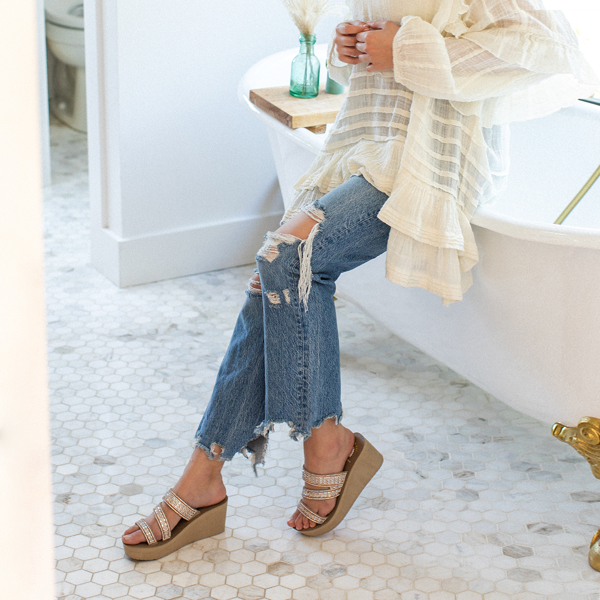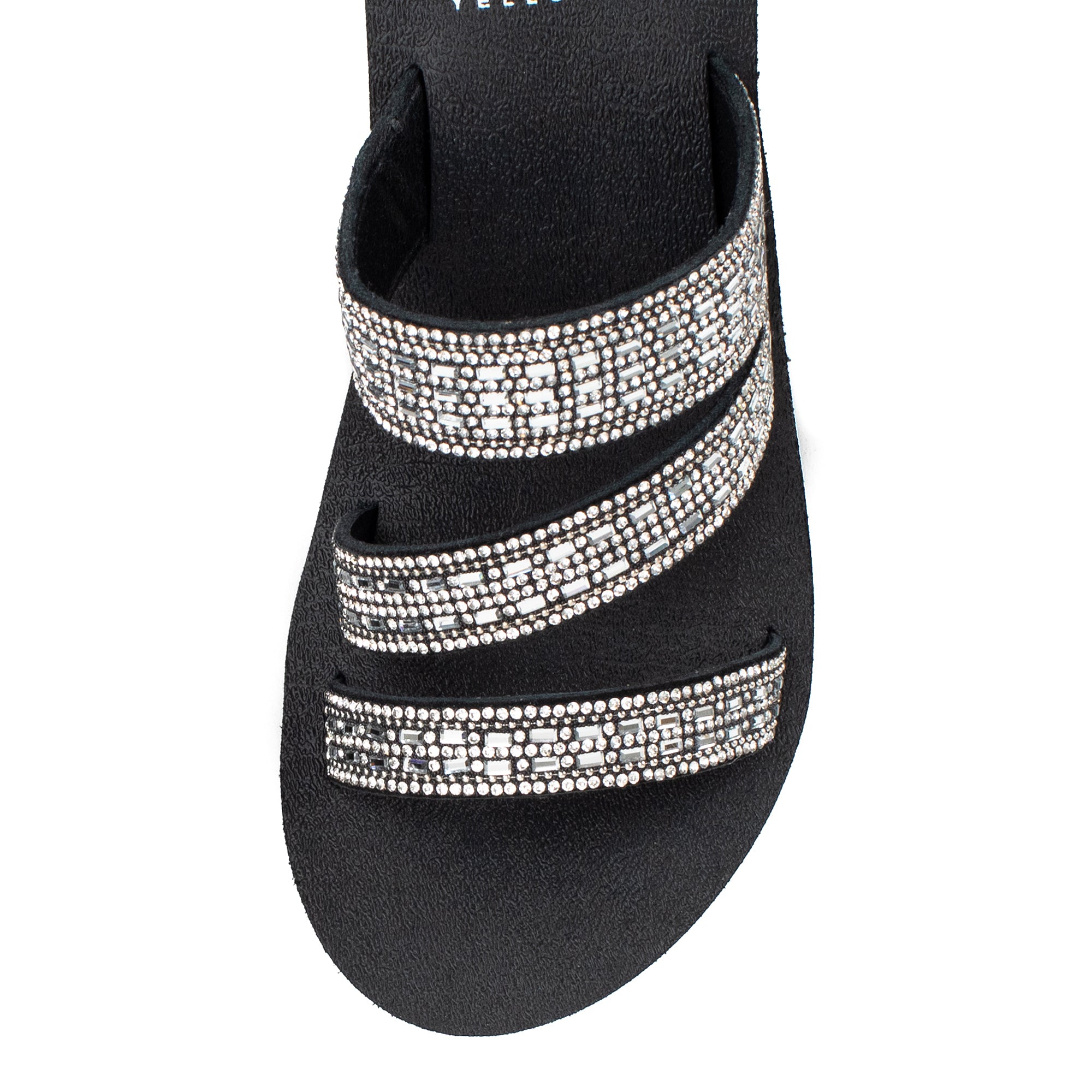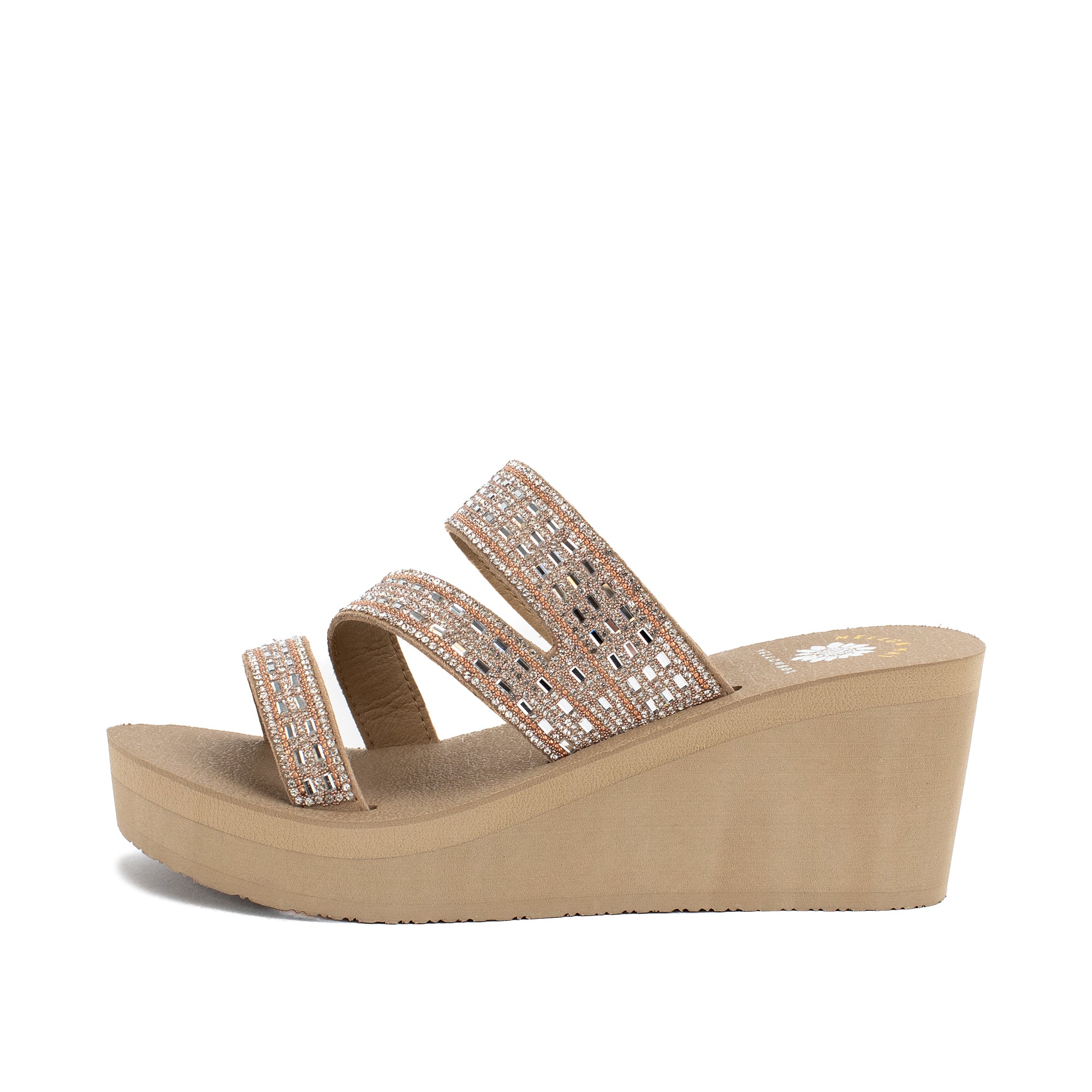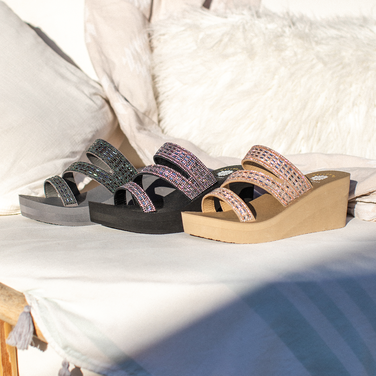 WITLEY guarantees non-stop compliments with its captivating sparkling inset straps. This wedge sandal from our Mellow Mat™ collection features a slow rebound contoured footbed.