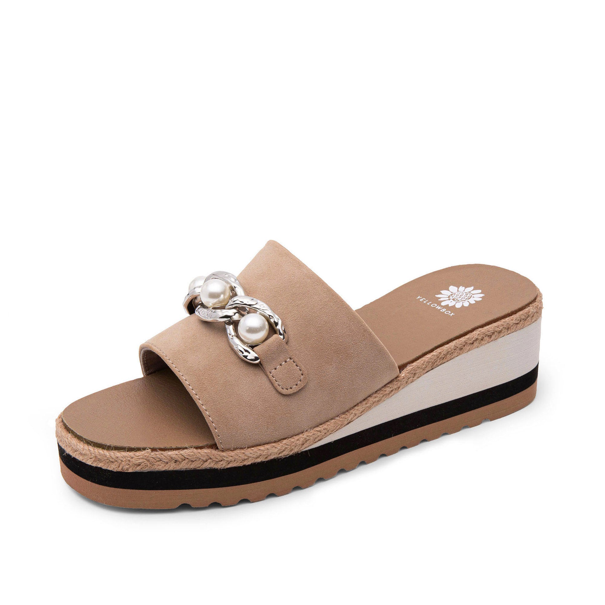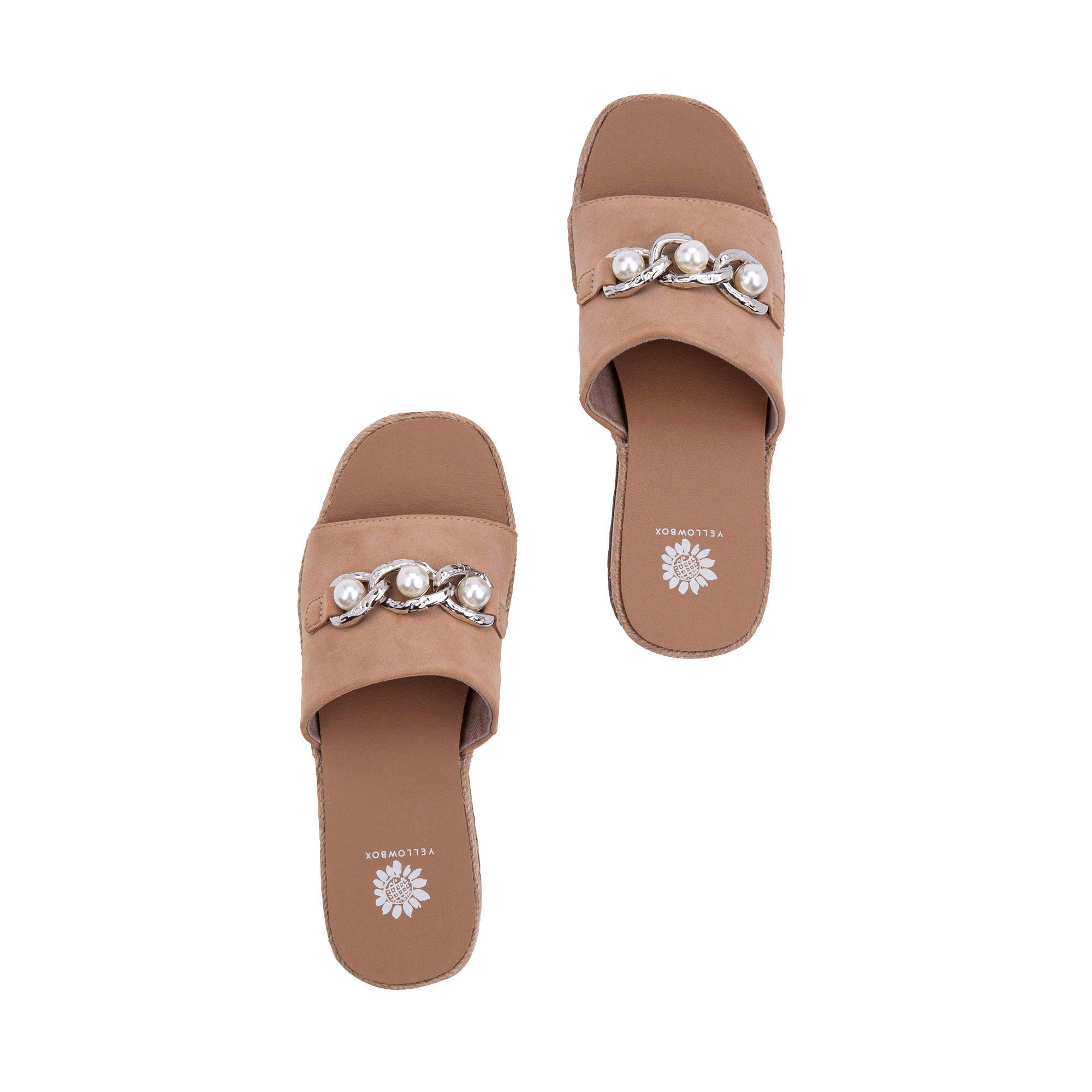Step into the spotlight with ADELFIA. These slide wedge sandals feature a playful chain detail and shimmering pearls that will catch everyone's eye.