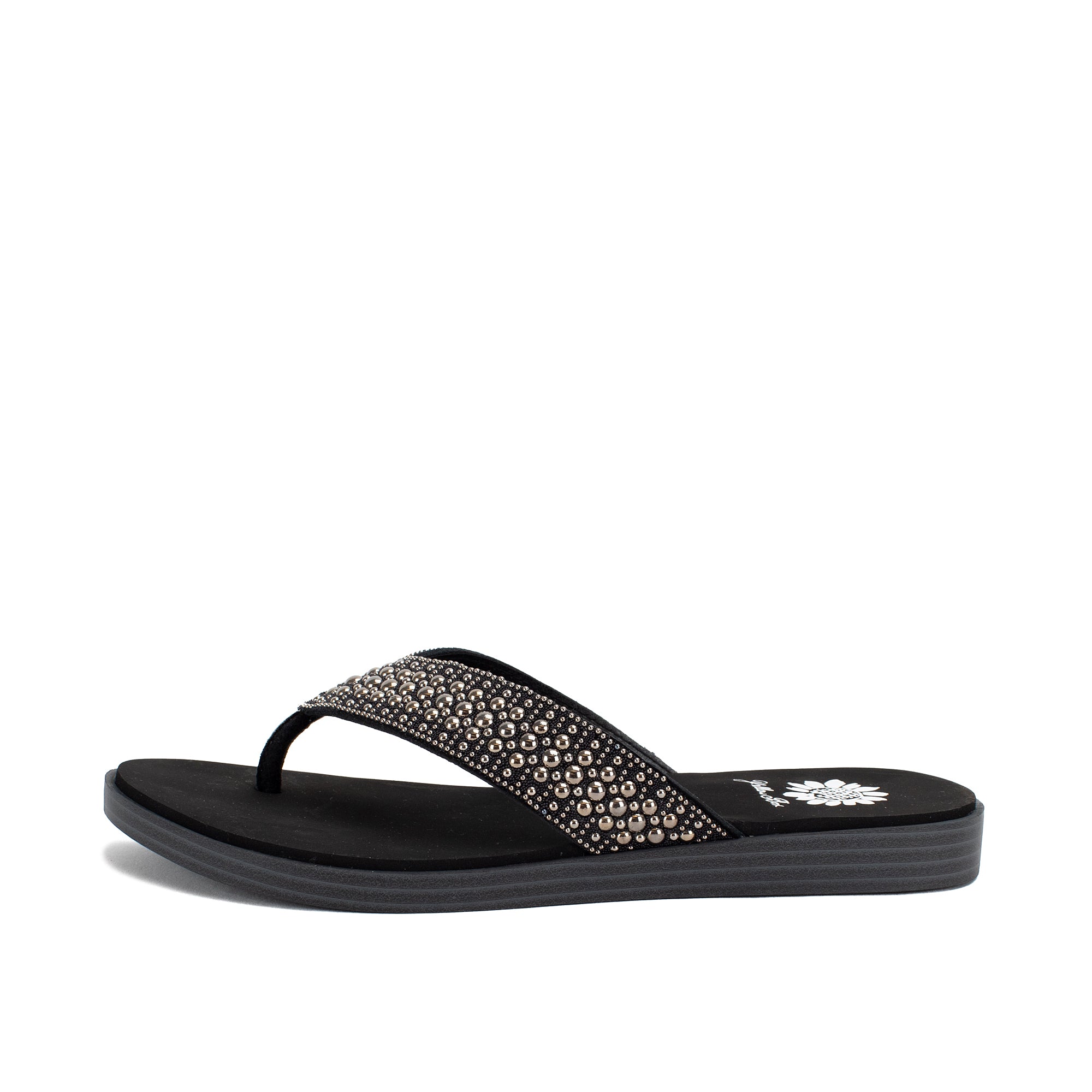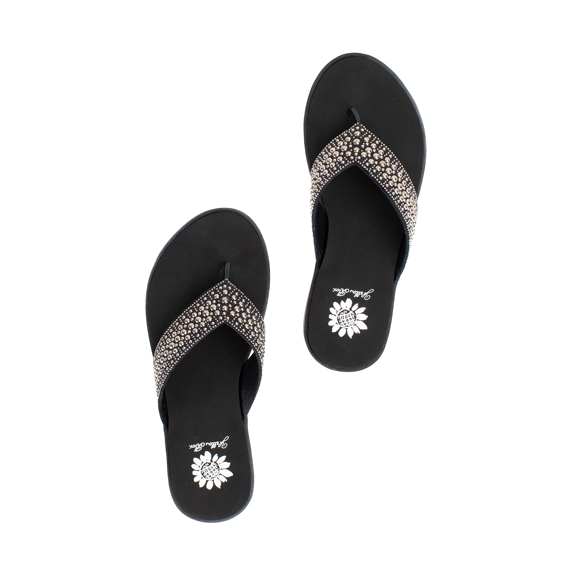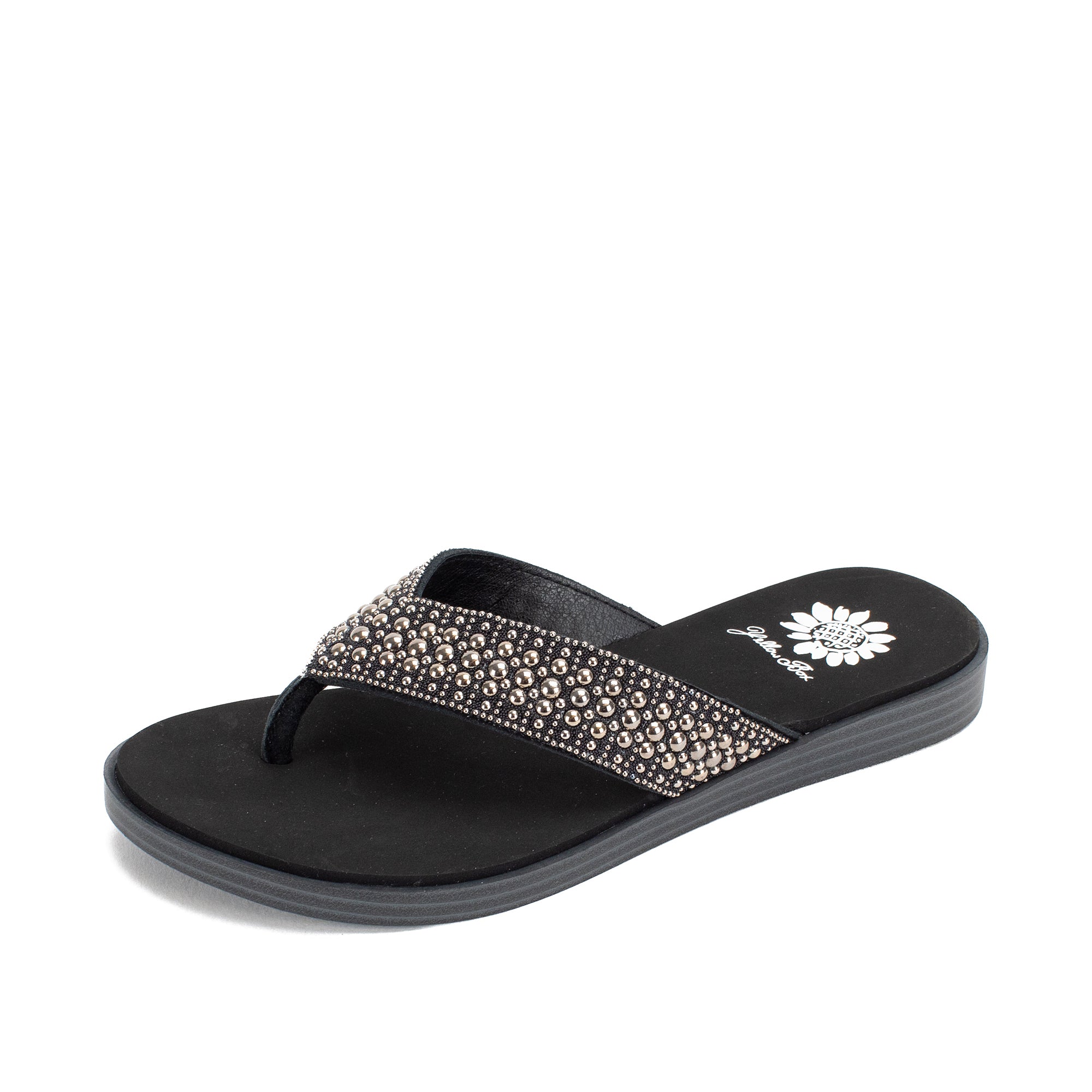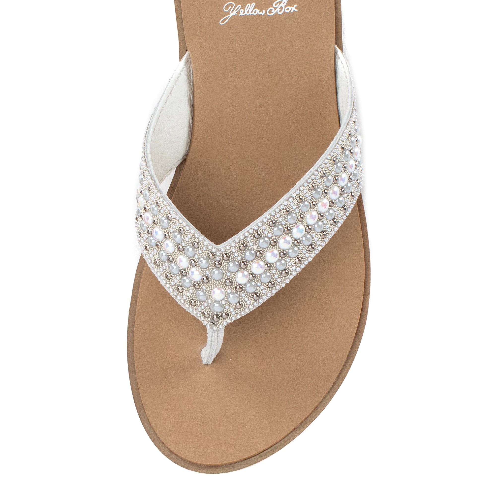 Meet DEBRA, a flip-flop sandal featuring straps adorned with half-pearl embellishments and a slender silhouette that adds a playful pop to everyday looks. This low-profile sandal is modern and features our Signature Yellow Box EVA foam footbed.