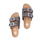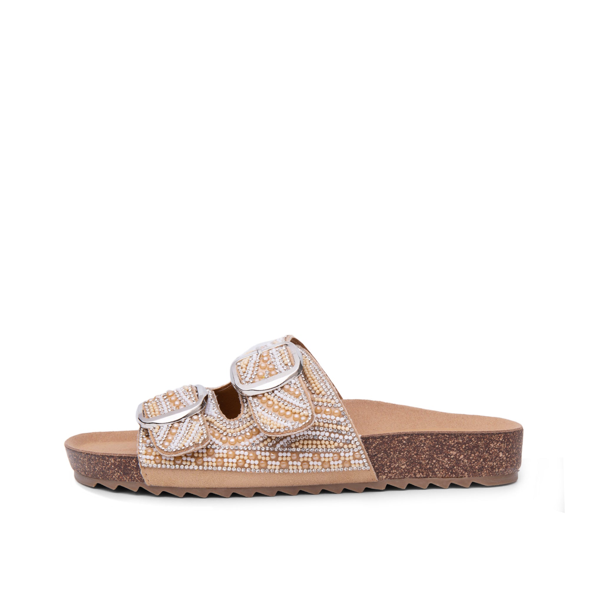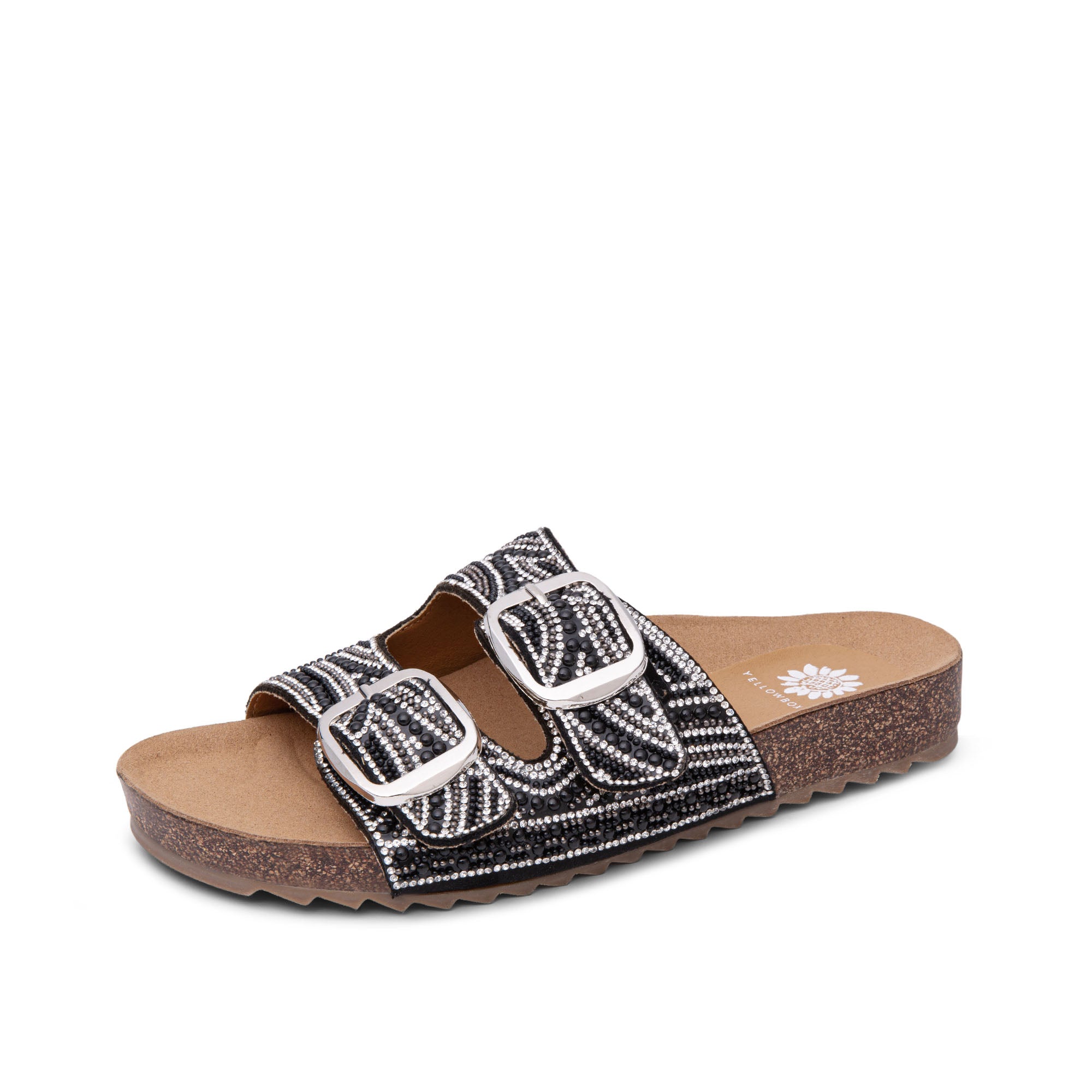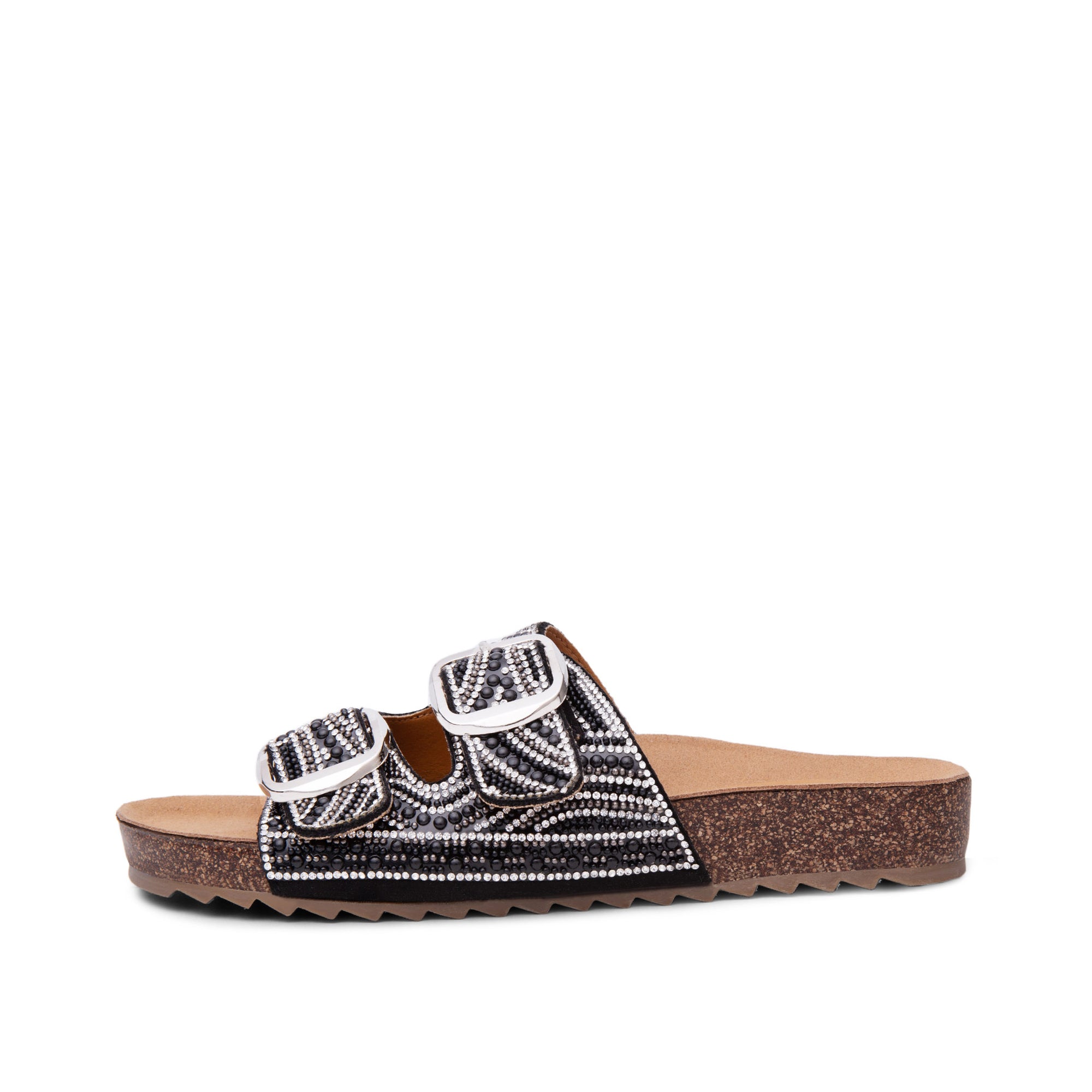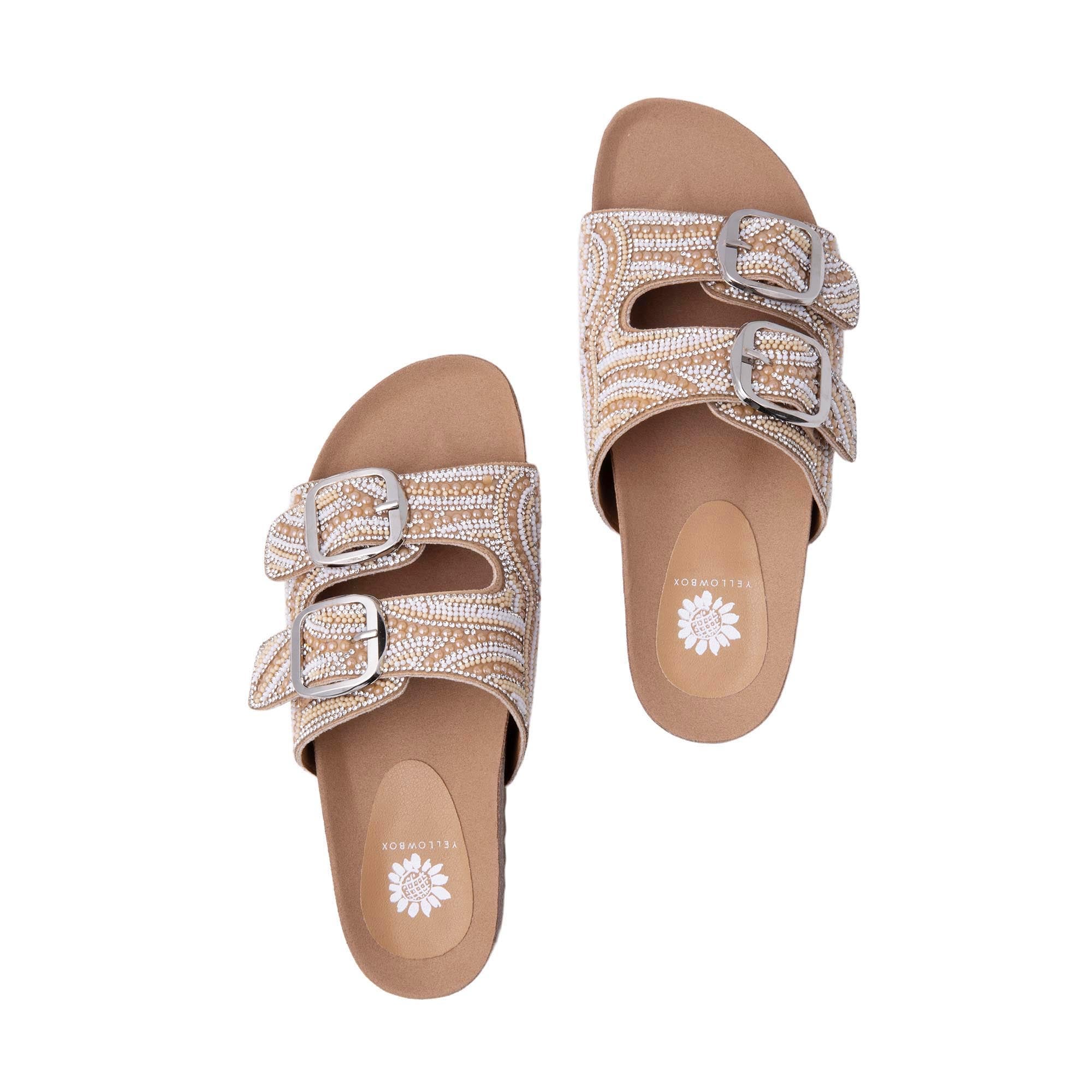 The HASINA bedazzled slide sandal is designed with a molded footbed and double buckle accents for a secure and comfortable fit that's easy to wear. Perfect for days on the go!