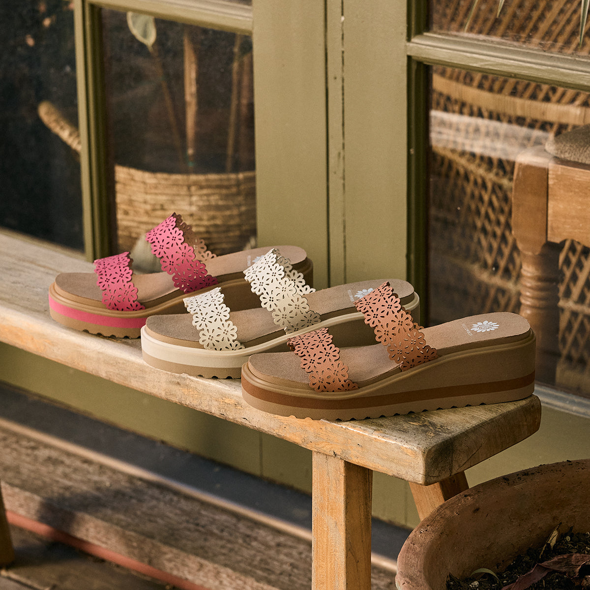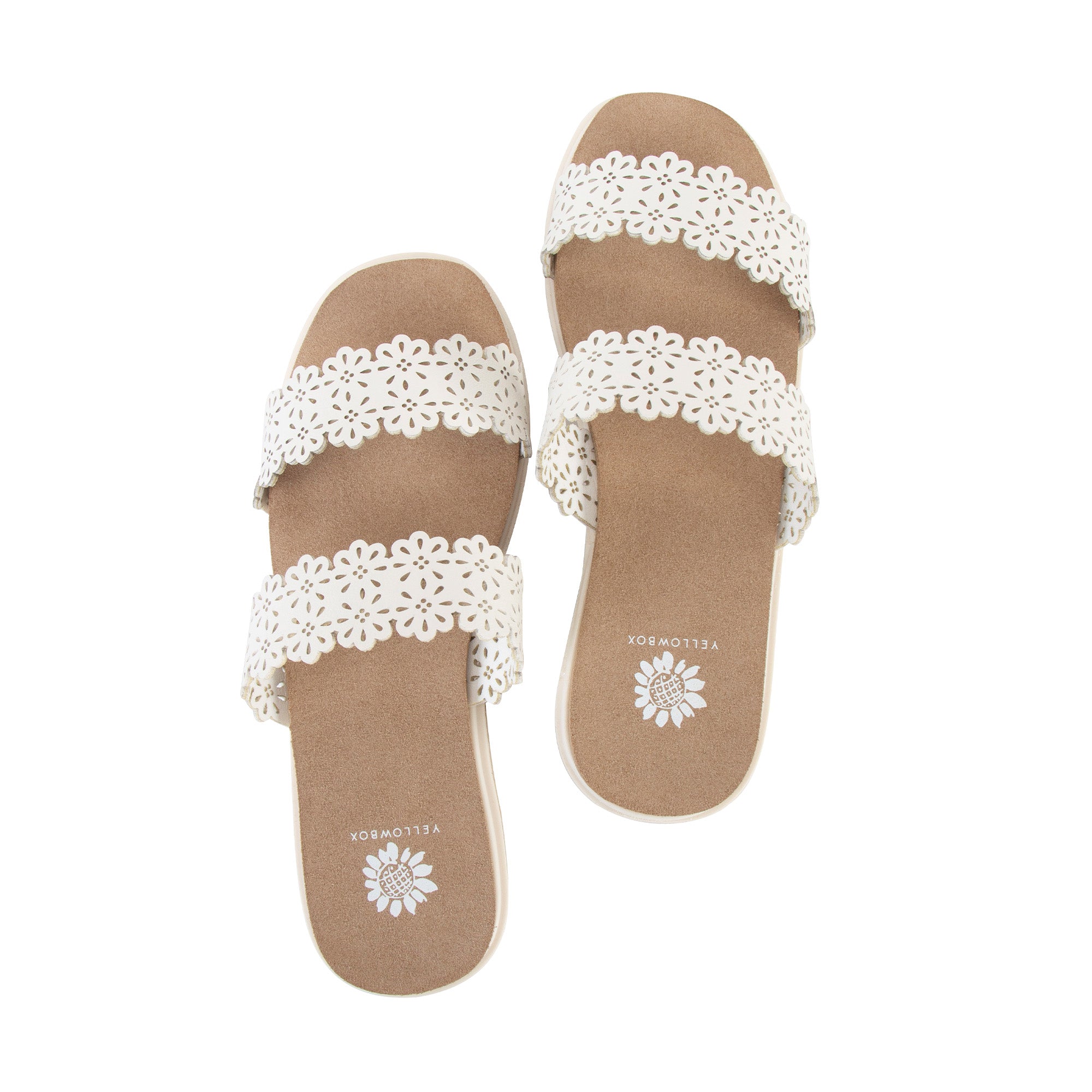 Need a sandal that's easy, elevated, and endlessly wearable? Meet AIRY-this slide features perforated floral straps with adorable scalloped edges. The comfy signature Yellow Box EVA makes AIRY a wedge that wows every look, every time.