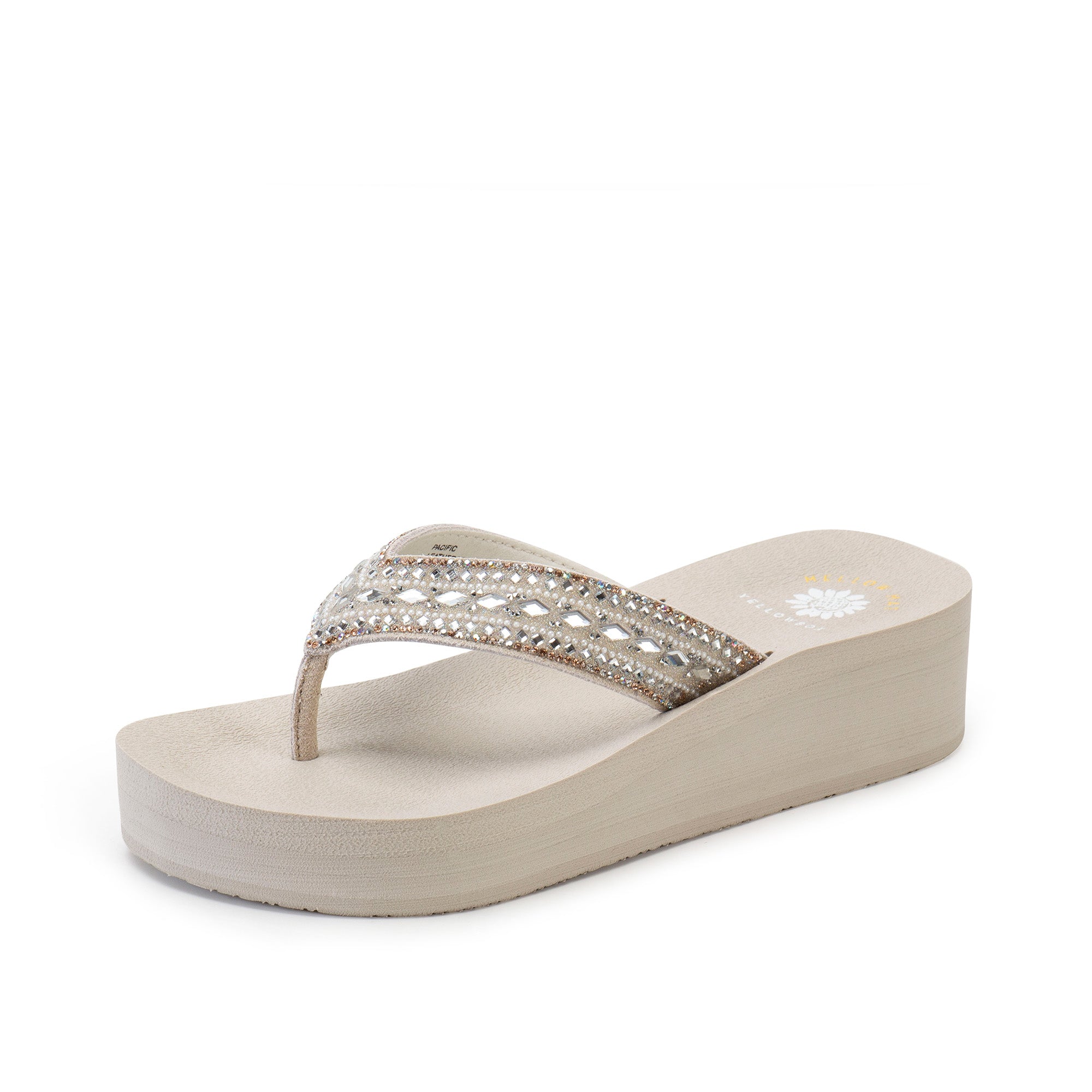 Bold bling meets luxe comfort with our PACIFIC flatform sandal, featuring a slow rebound contoured footbed from our Mellow Mat™ collection.