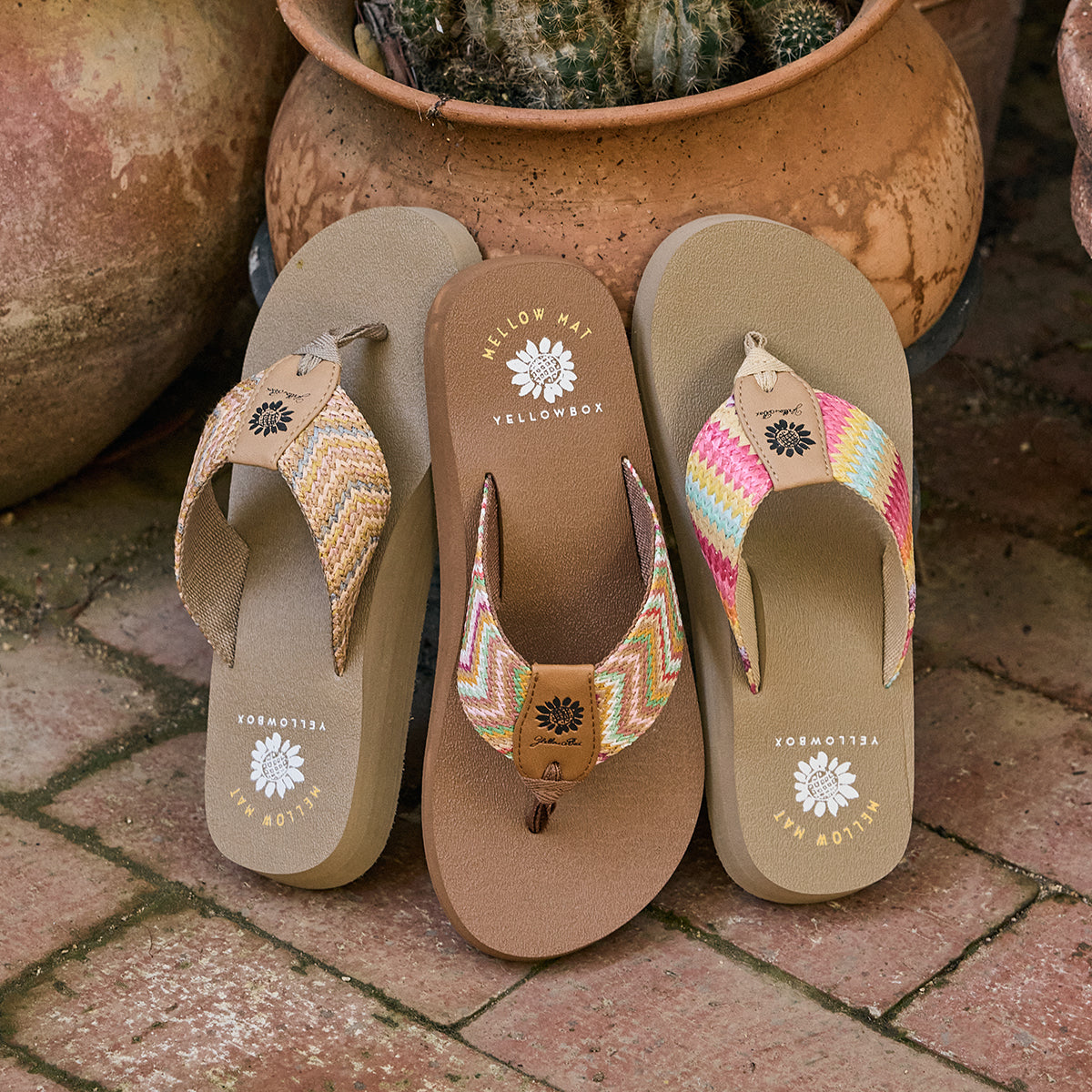 Mellow Mat™ sandals feature resilient impact-reducing footbeds inspired by yoga mats, with all the same style and charm as our Signature Yellow Box Collection.