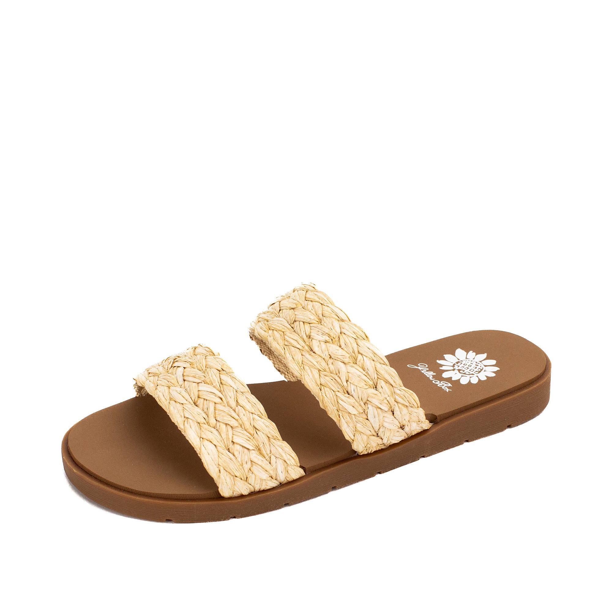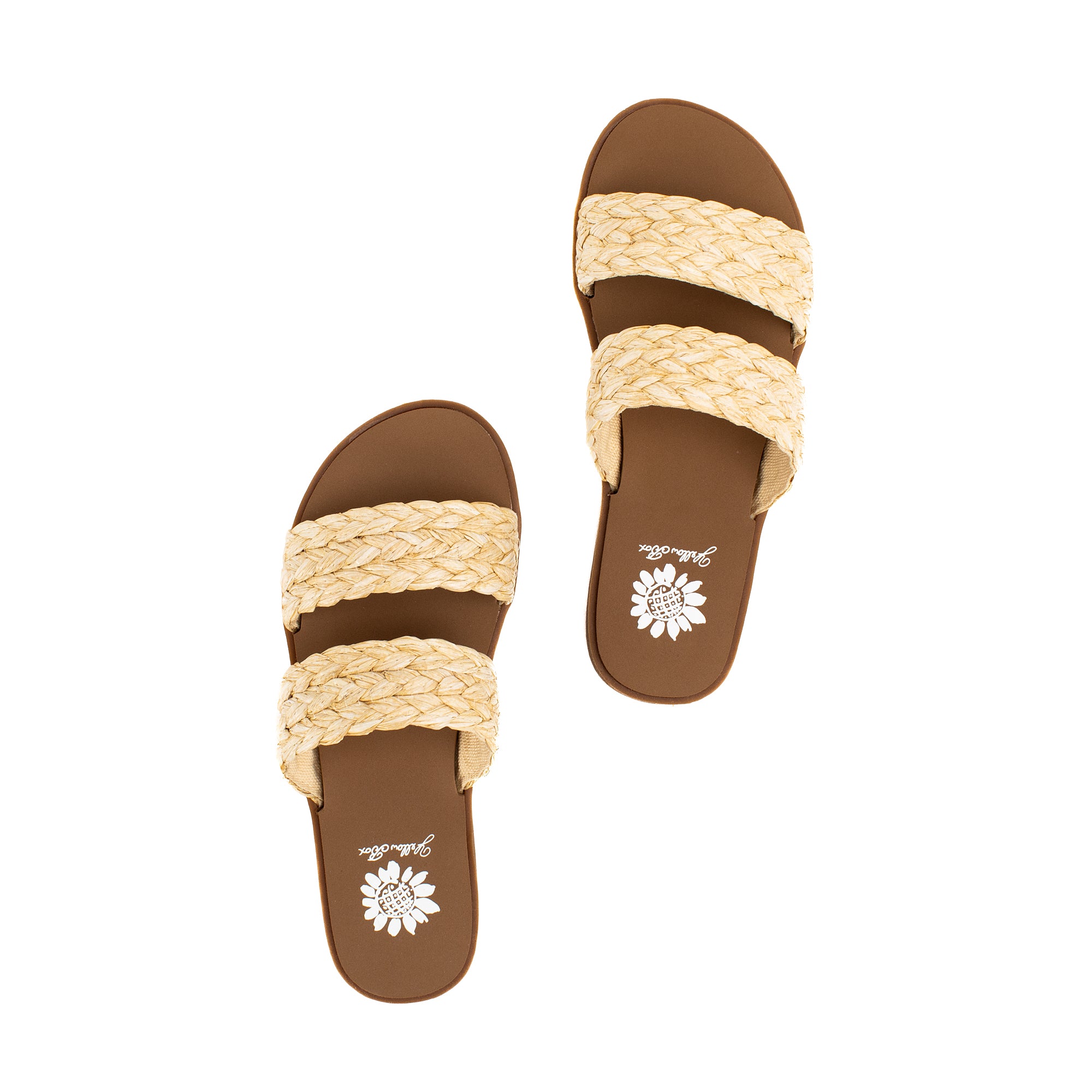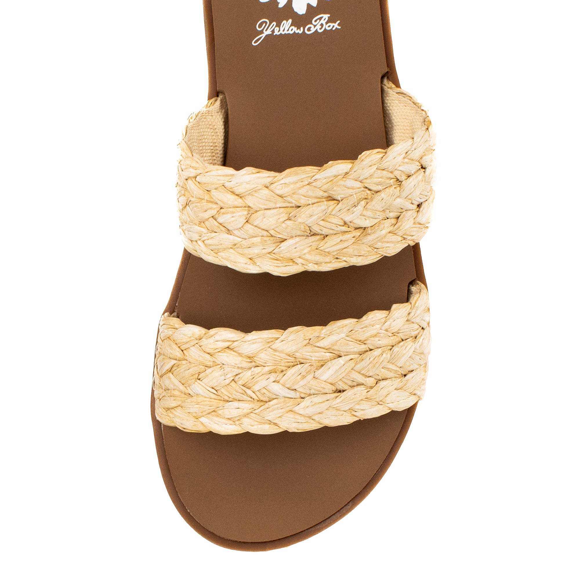 Feel the tropical vibe in your new favorite slides with braided raffia style straps. The FILBERT sandals can take you to the store or take you to Hawaii with our Signature Yellow Box EVA footbeds.
