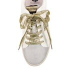 An iconic mixed-material glitter sneaker available in two colors that go with everything.