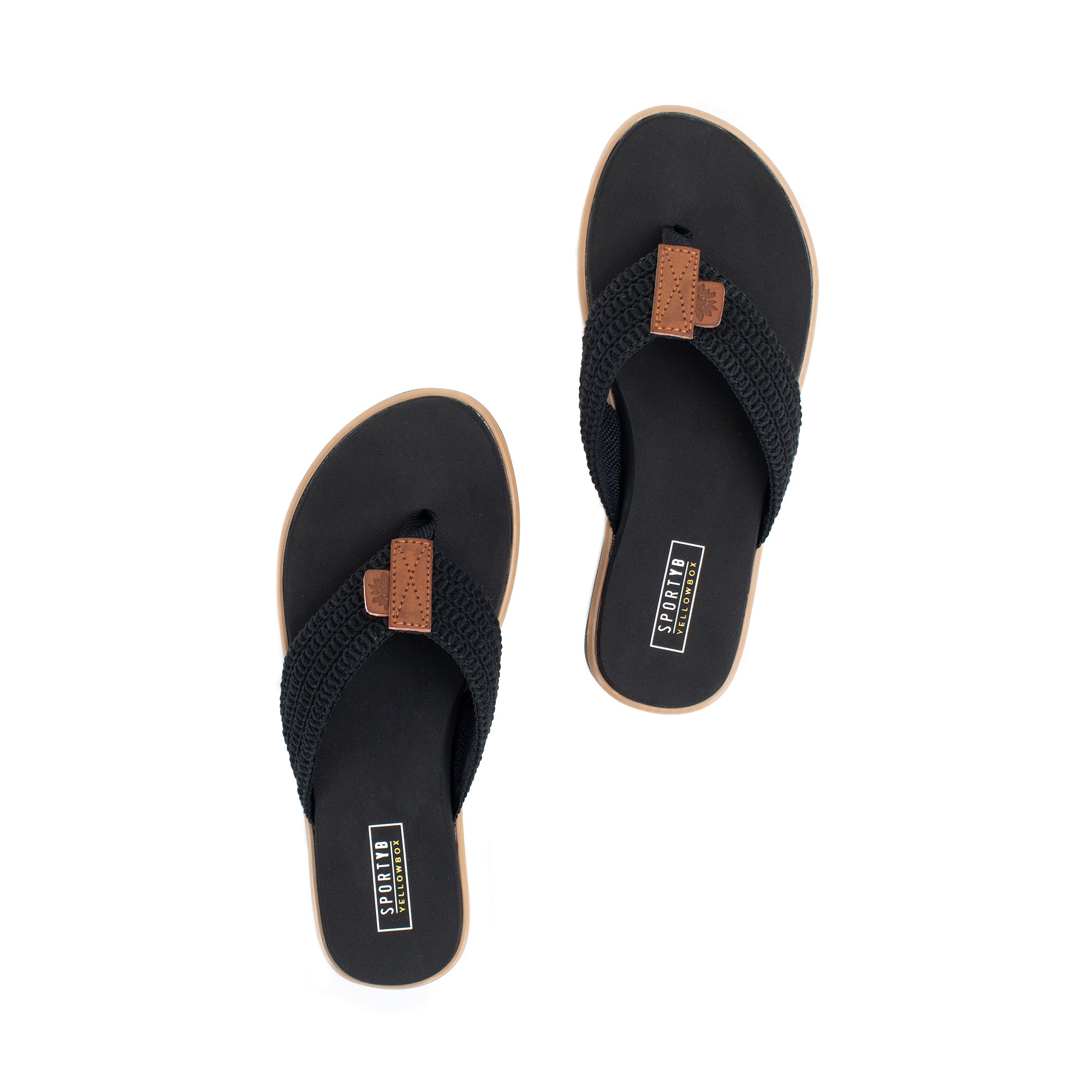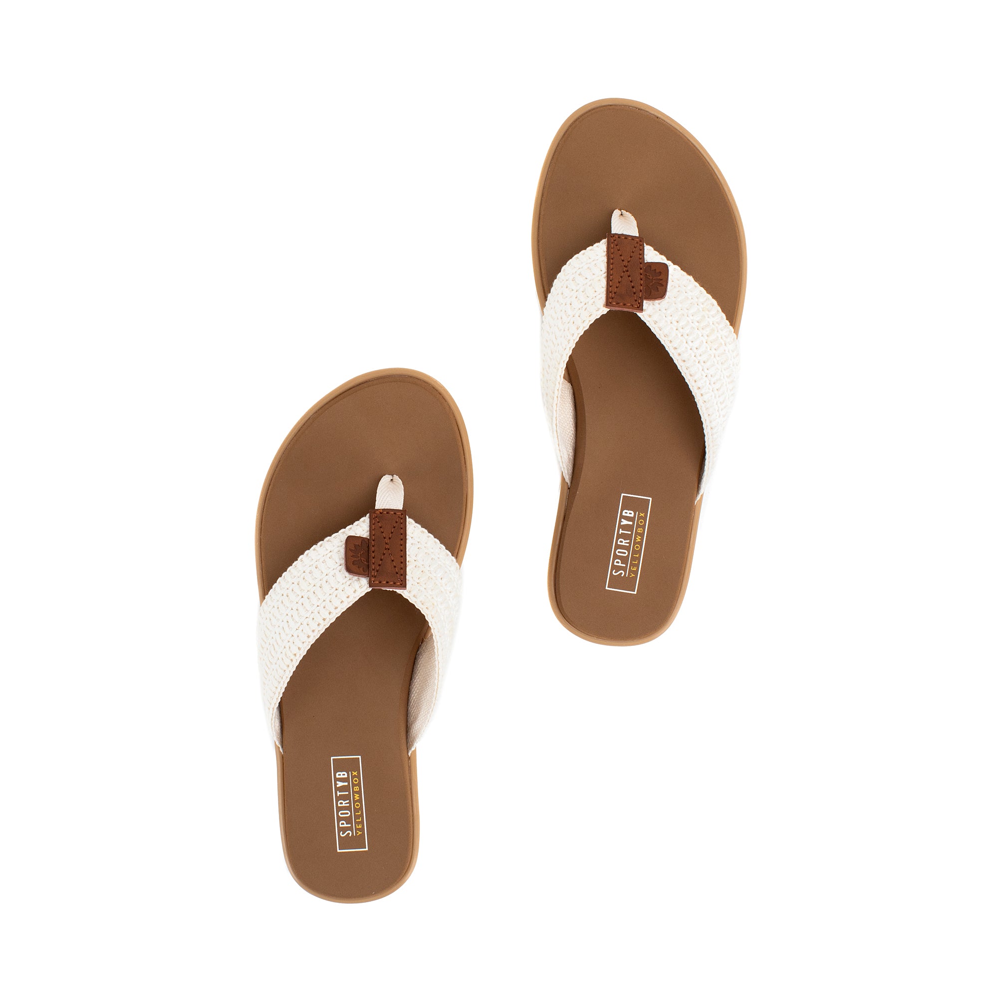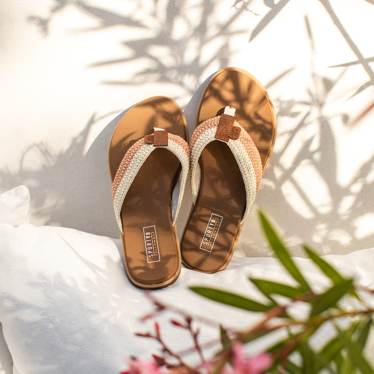 Our SARNIA flip-flop sandals offer the best of both worlds: comfort and on-trend style. Featuring high-quality woven straps with a center logo tab and a ribbon toe post to keep you secure and comfortable with every wear. This sandal bottom is from our SPORTYB™ collection, crafted with Signature Yellow Box EVA and a razor lug sole for lasting durability.