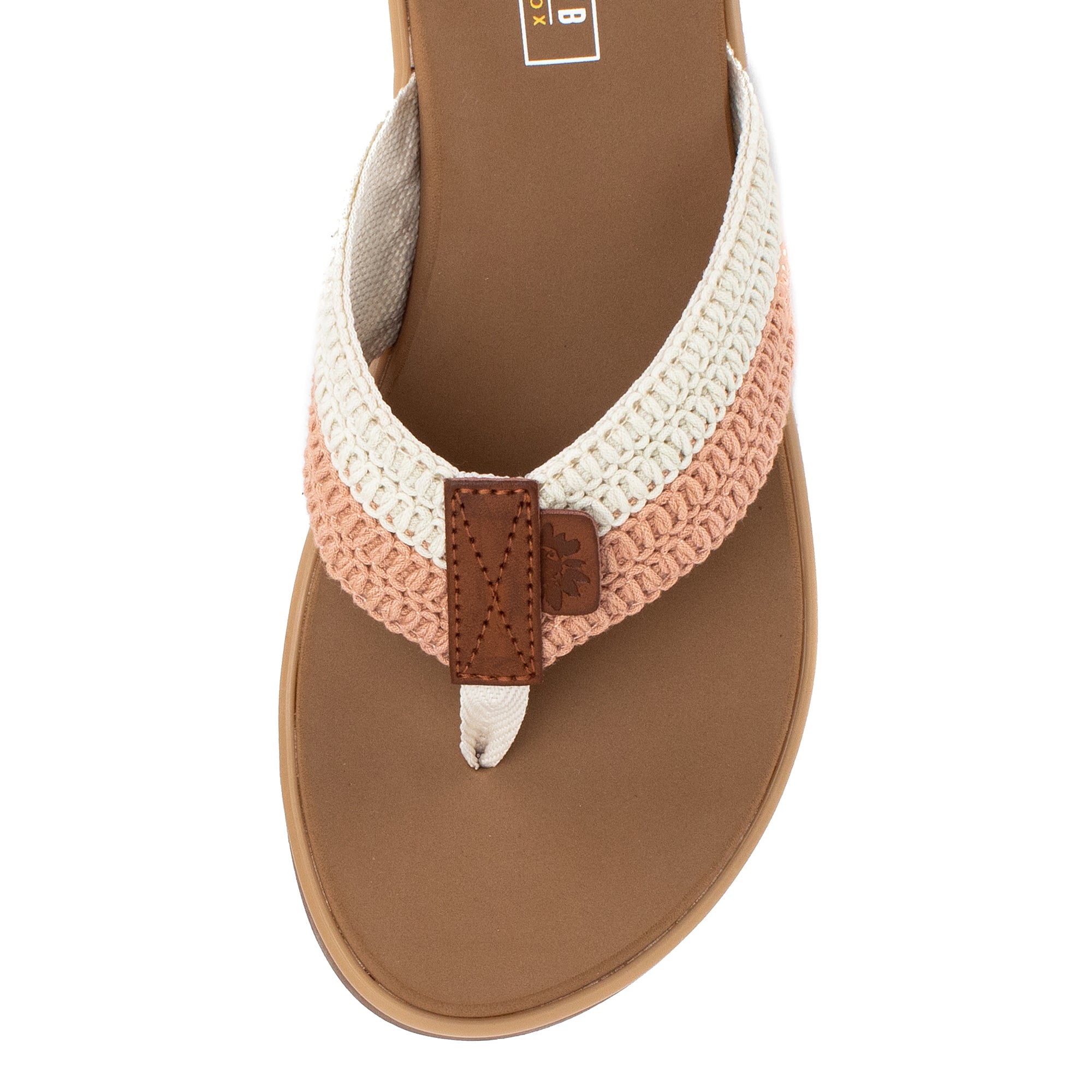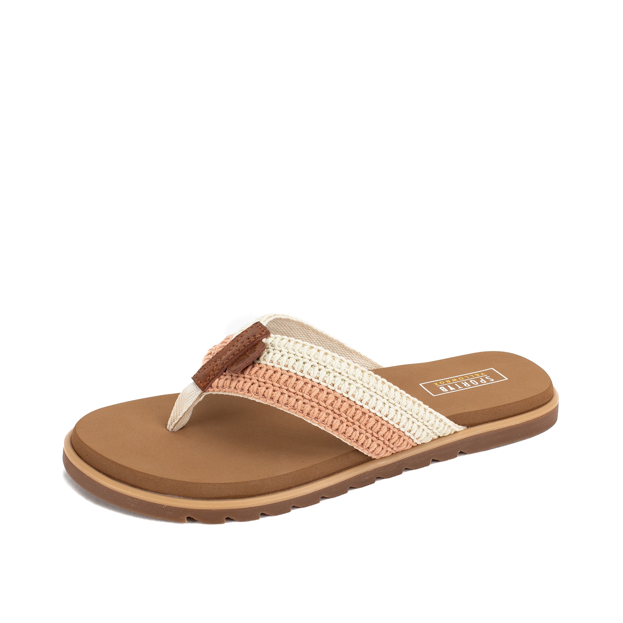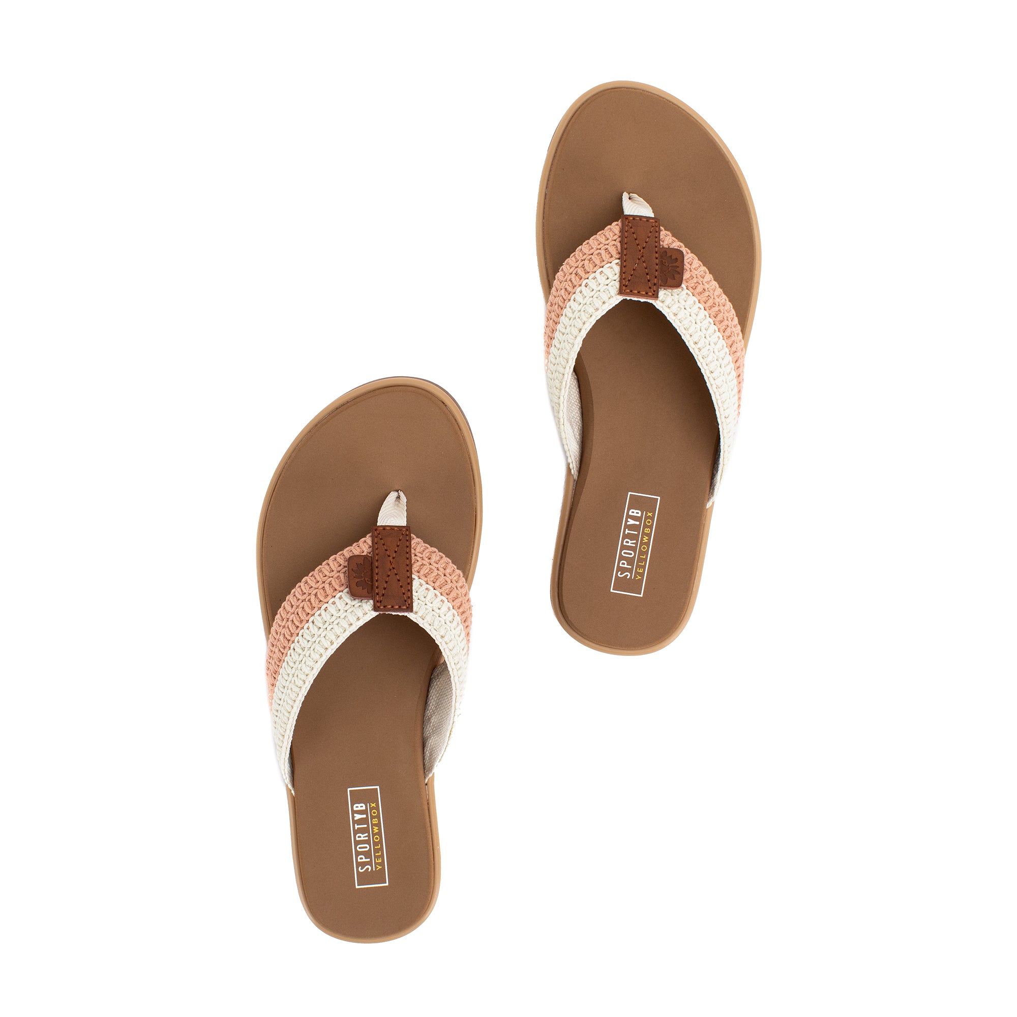 Our SARNIA flip-flop sandals offer the best of both worlds: comfort and on-trend style. Featuring high-quality woven straps with a center logo tab and a ribbon toe post to keep you secure and comfortable with every wear. This sandal bottom is from our SPORTYB™ collection, crafted with Signature Yellow Box EVA and a razor lug sole for lasting durability.