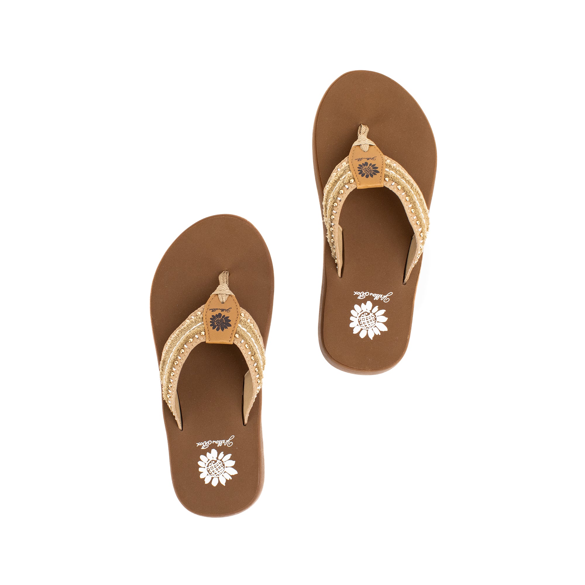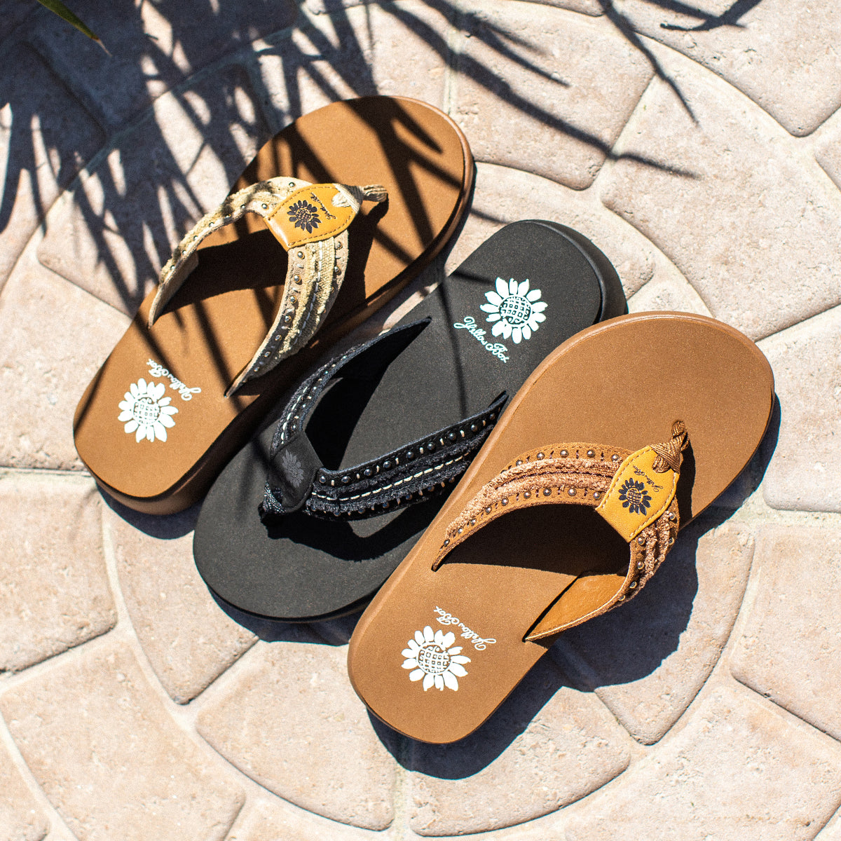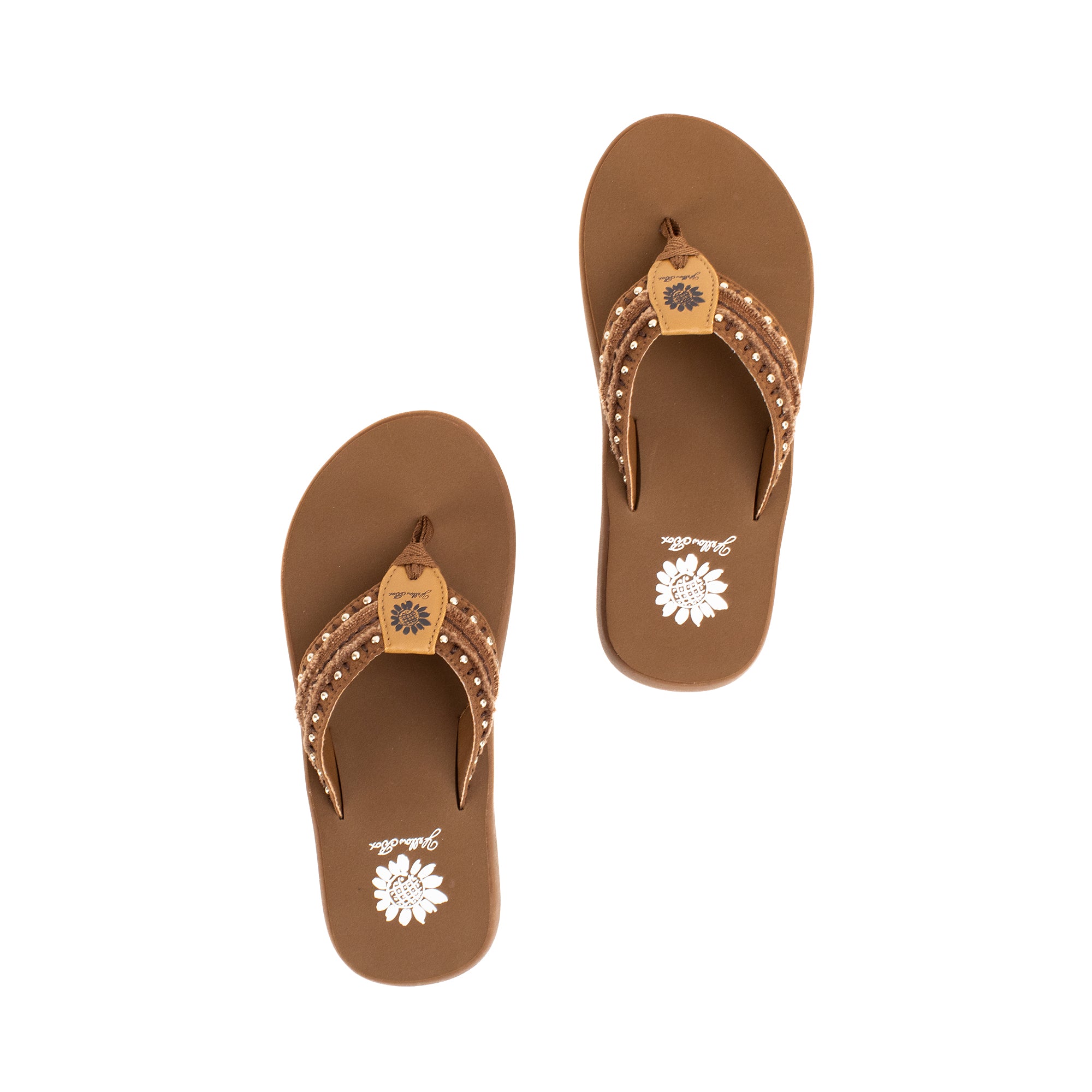 Multilayered, frayed, stitched, and studded - the GLENDALE sandals have the perfect mix of handcrafted touches. Take a closer look because it's all in the details. The GLENDALE sandals feature our Signature Yellow Box EVA footbed with a slip-resistant outer sole and a generous full shape.