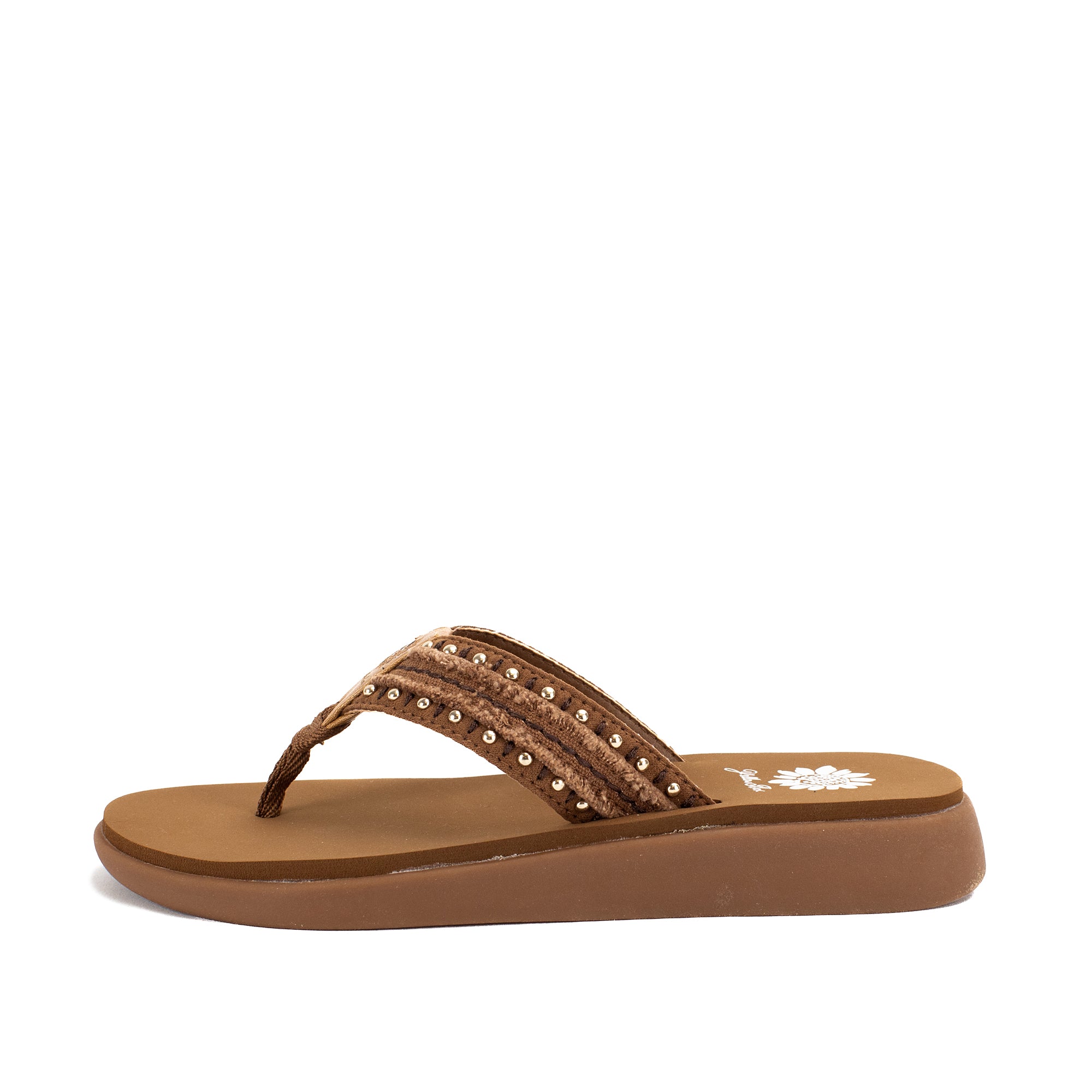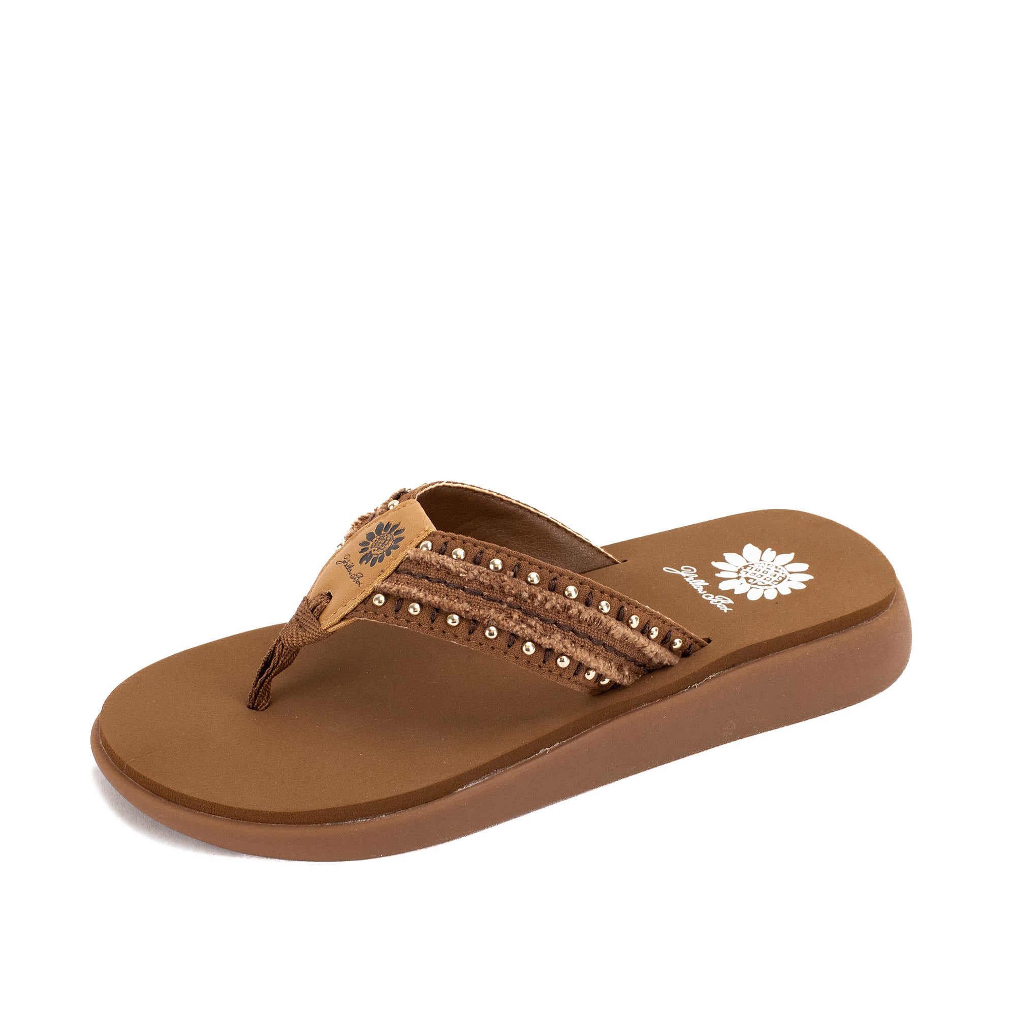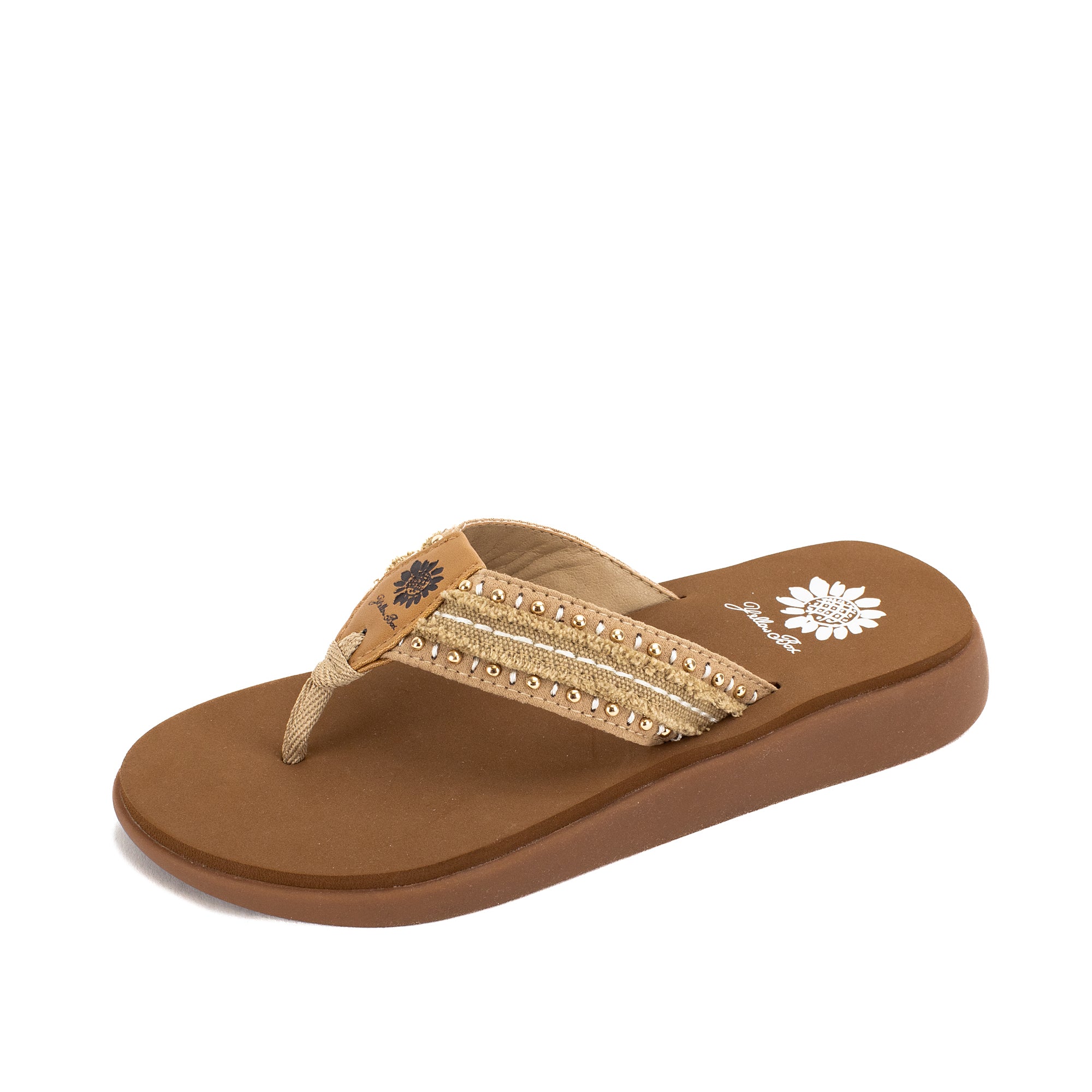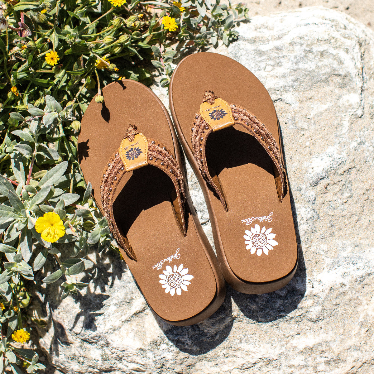 Multilayered, frayed, stitched, and studded - the GLENDALE sandals have the perfect mix of handcrafted touches. Take a closer look because it's all in the details. The GLENDALE sandals feature our Signature Yellow Box EVA footbed with a slip-resistant outer sole and a generous full shape.