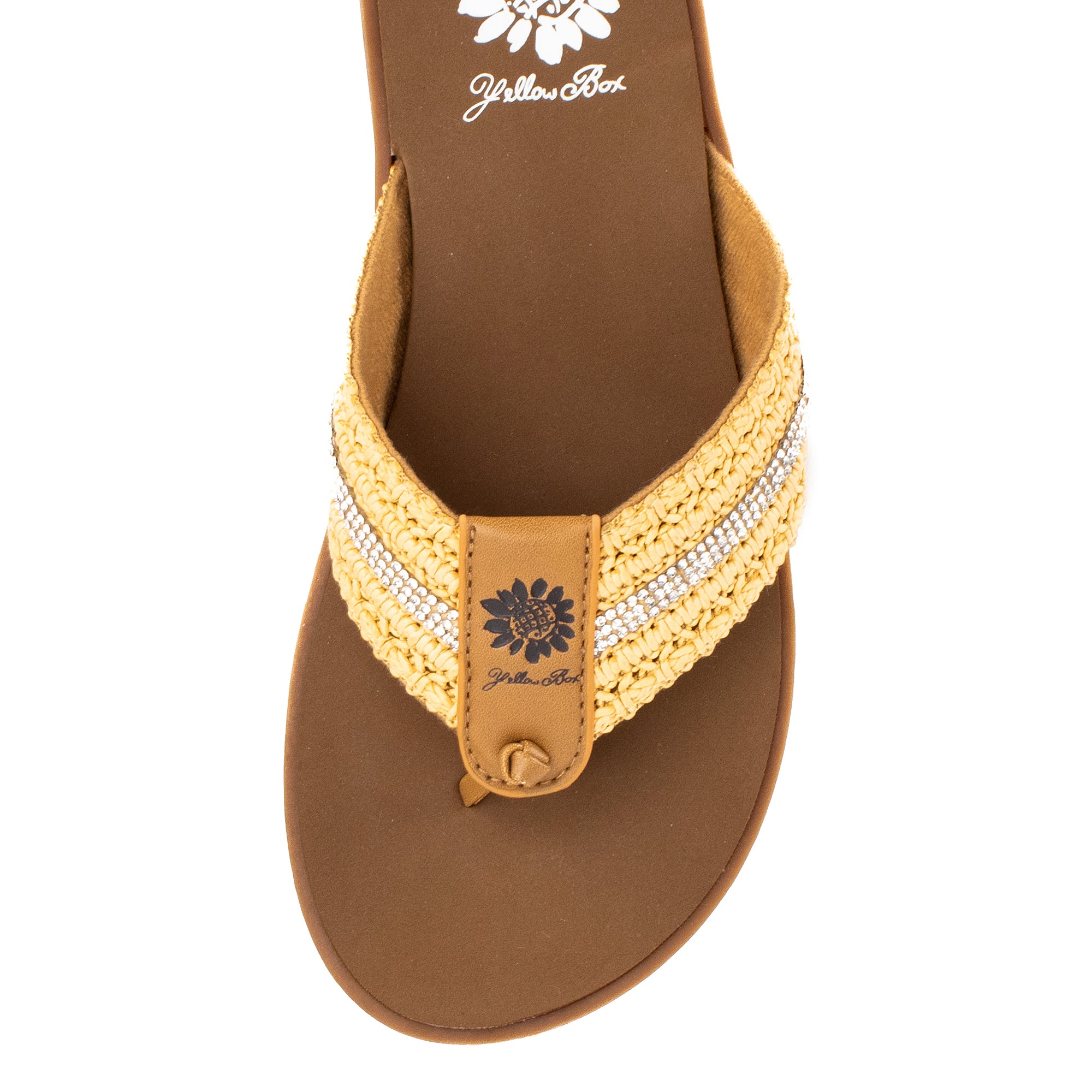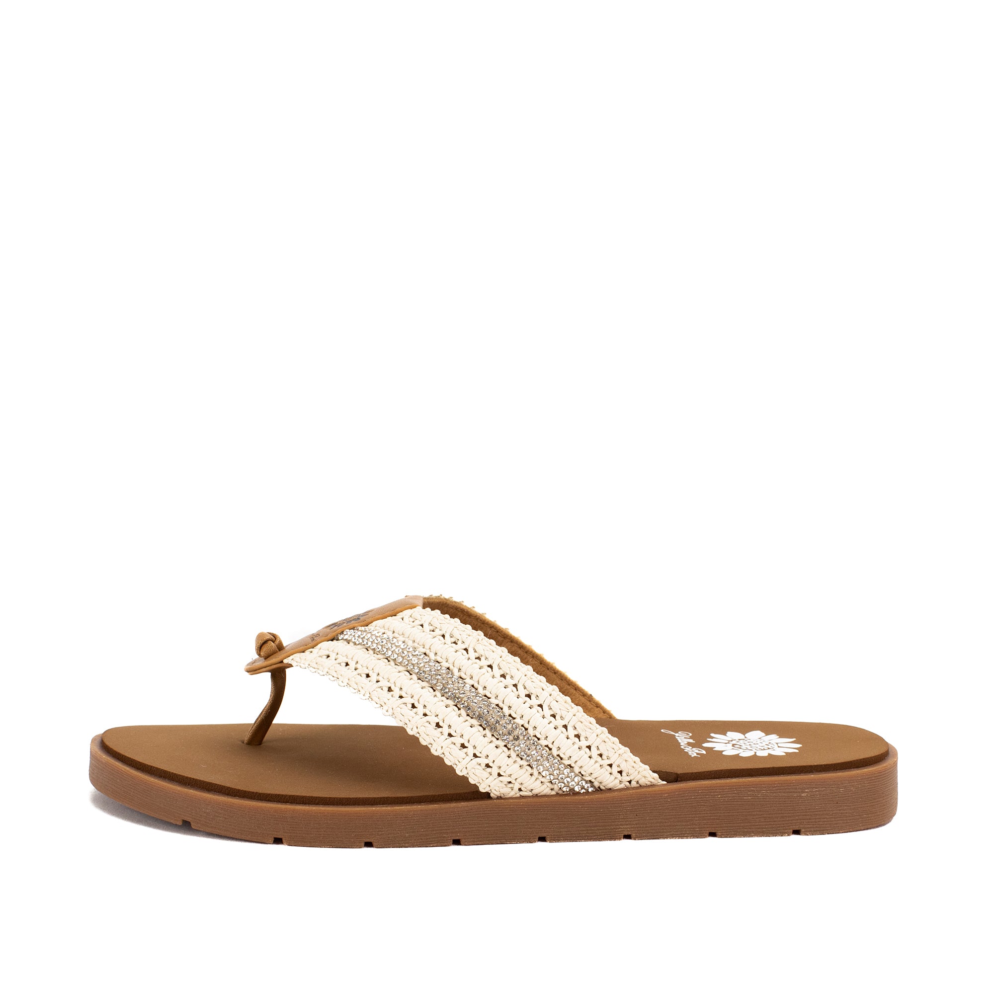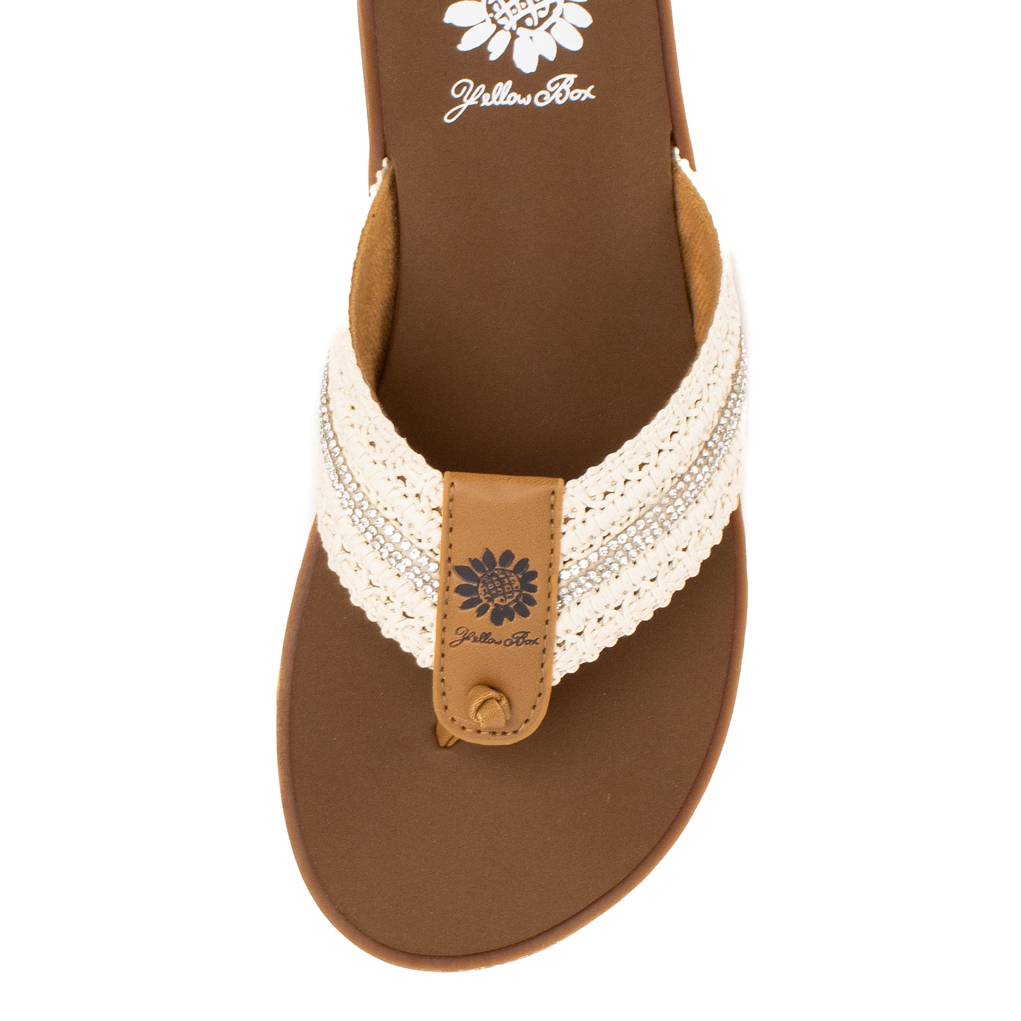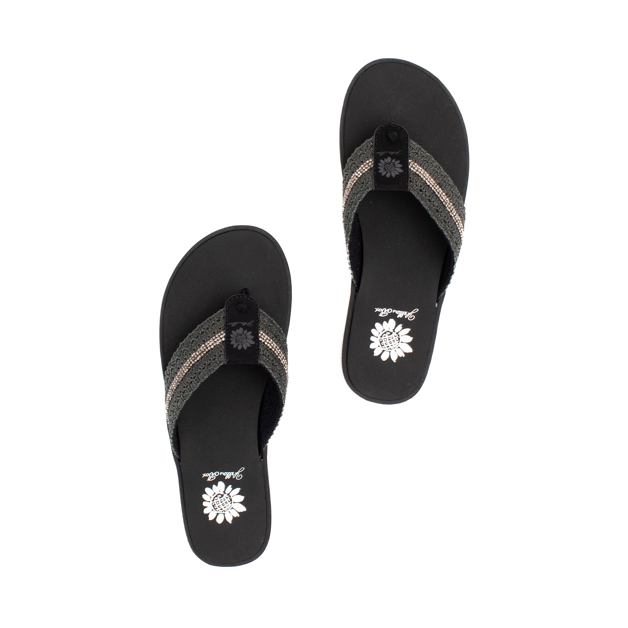 A crocheted strap with rows of zhuzh. The FANIA sandals are a clear fan favorite.