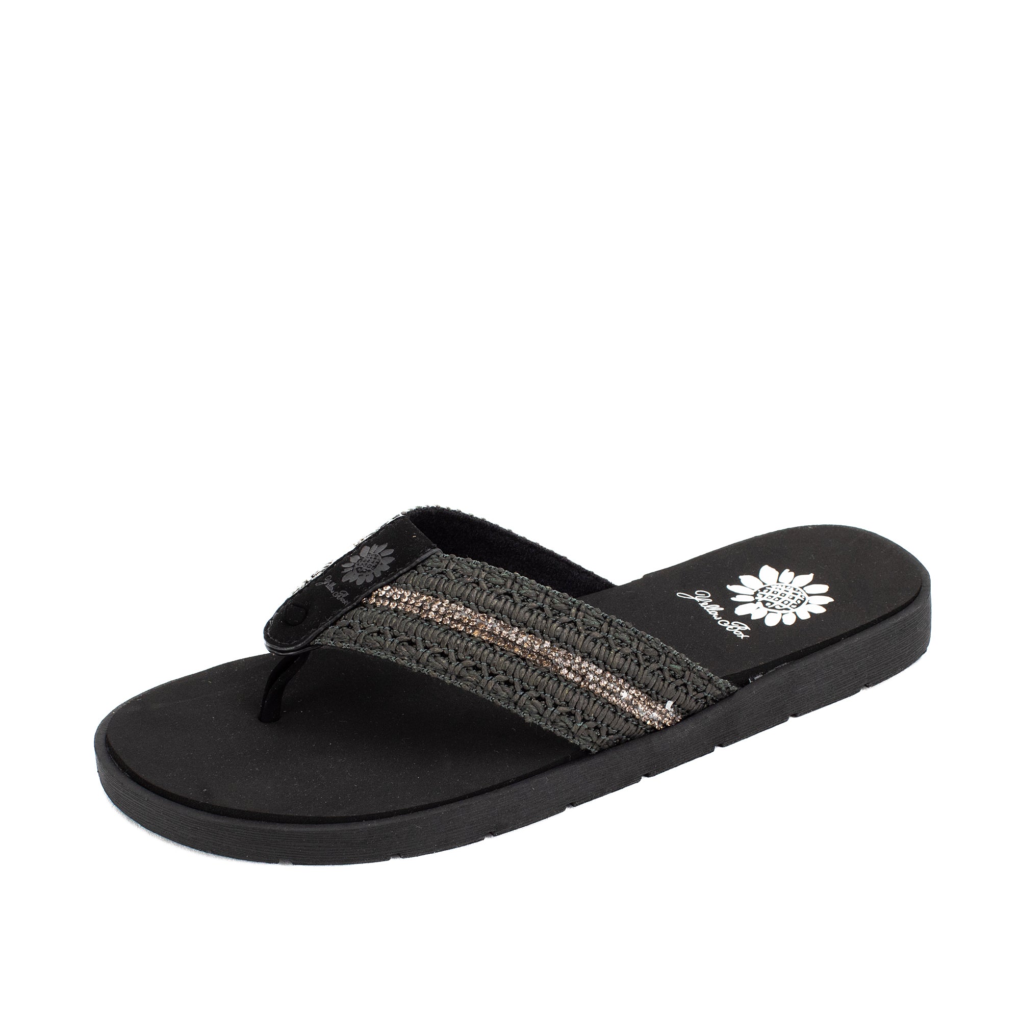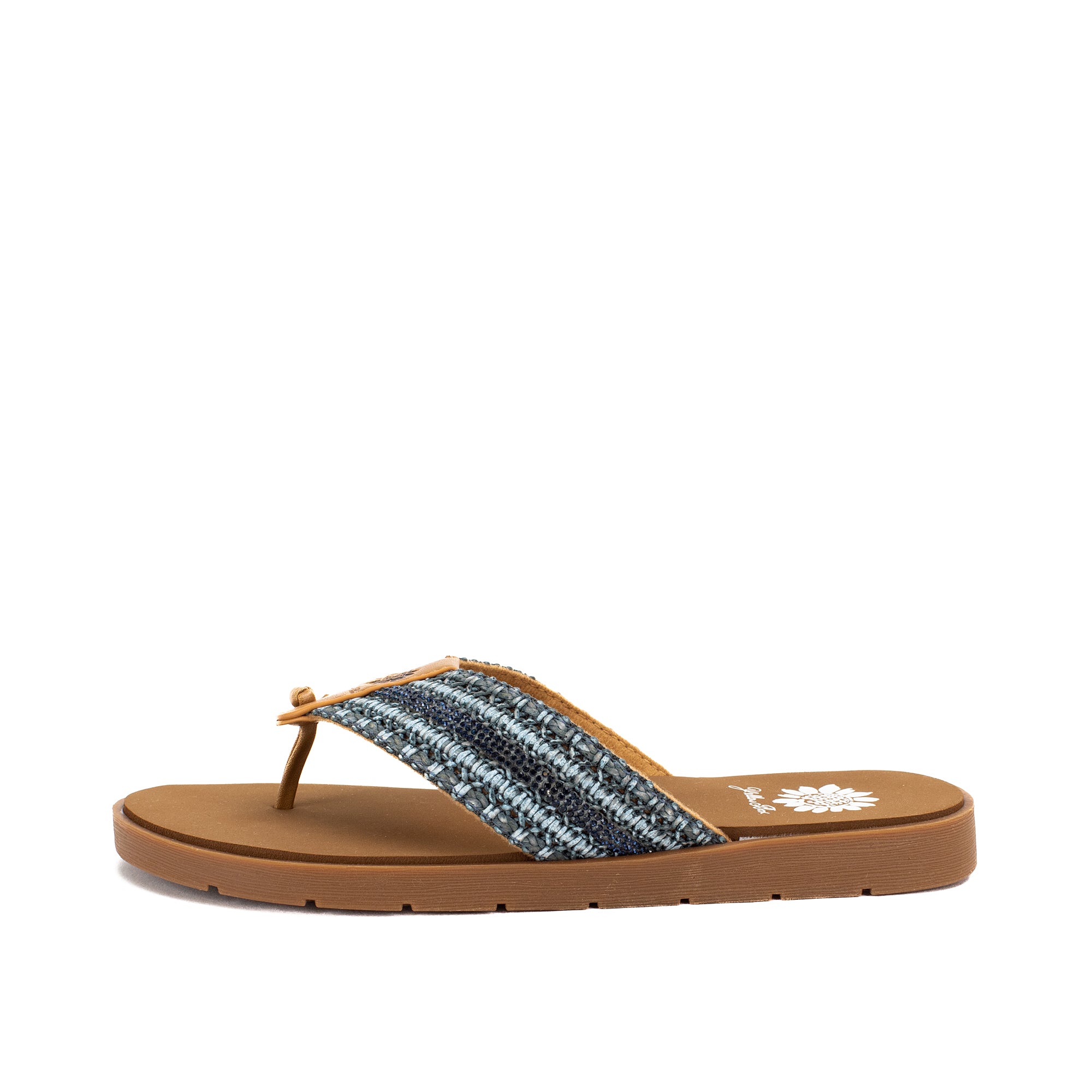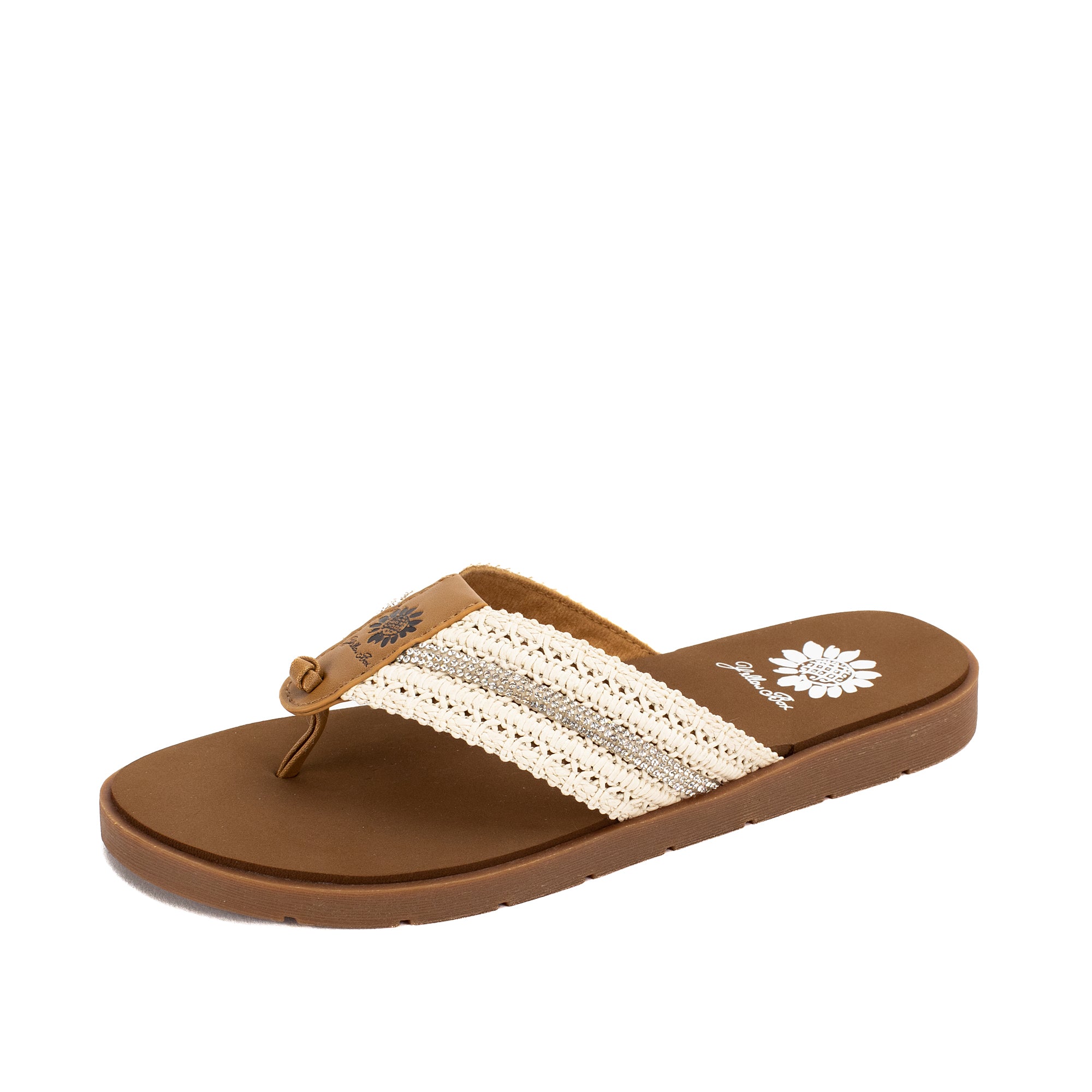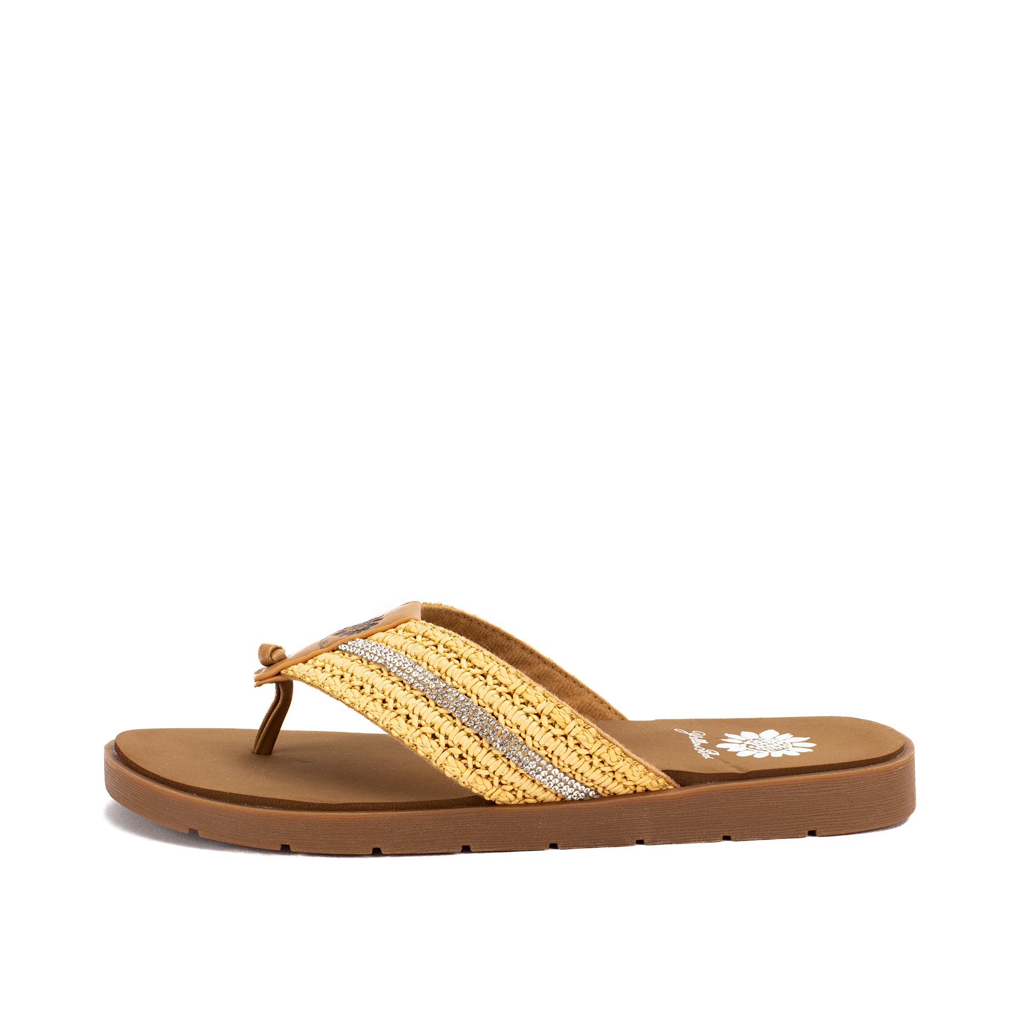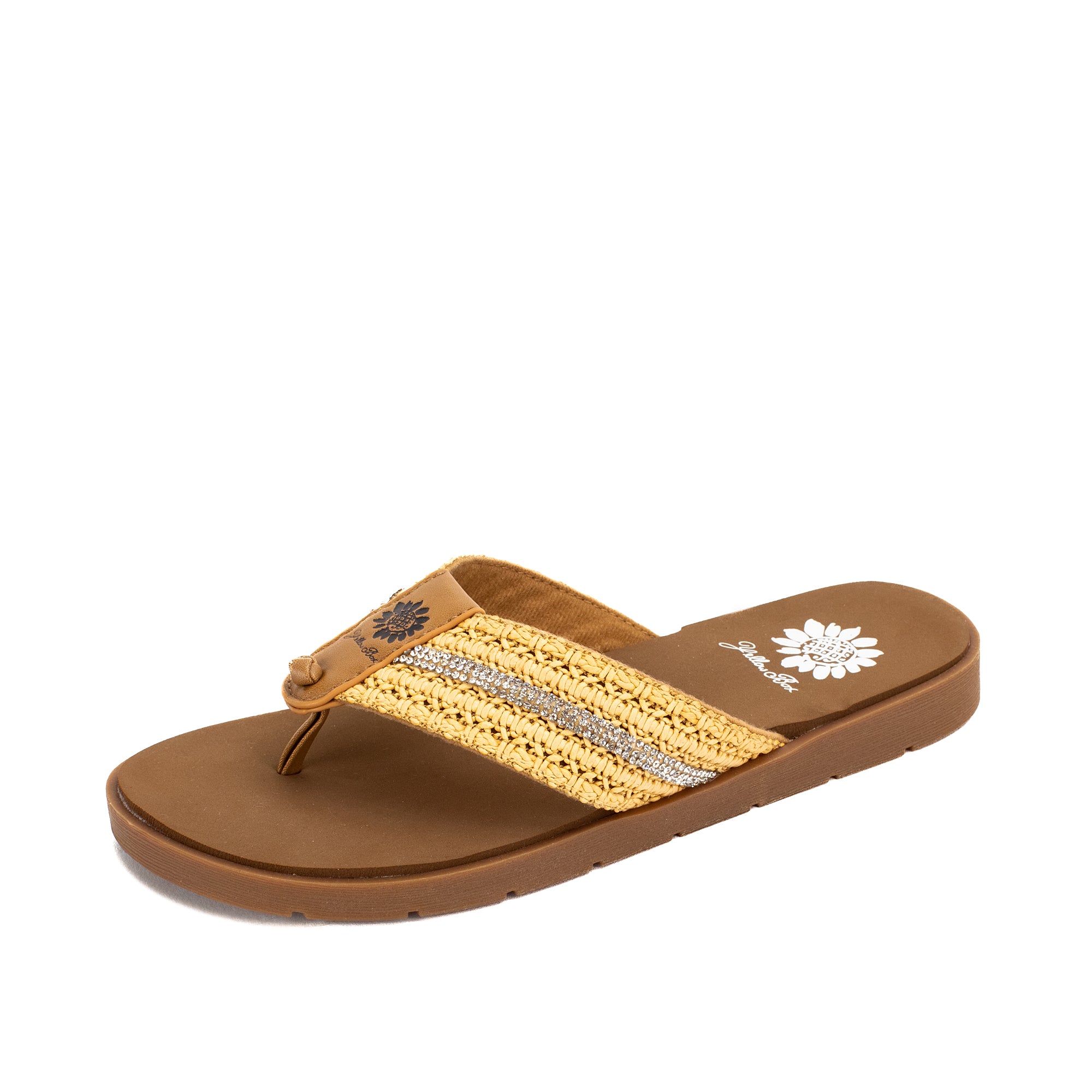 A crocheted strap with rows of zhuzh. The FANIA sandals are a clear fan favorite.