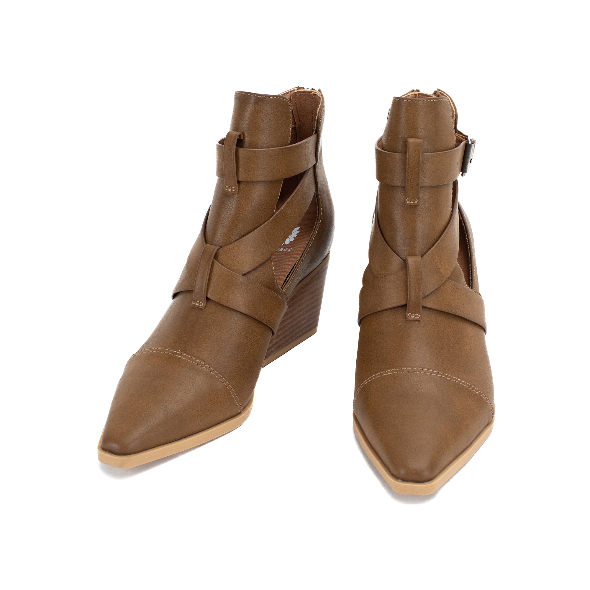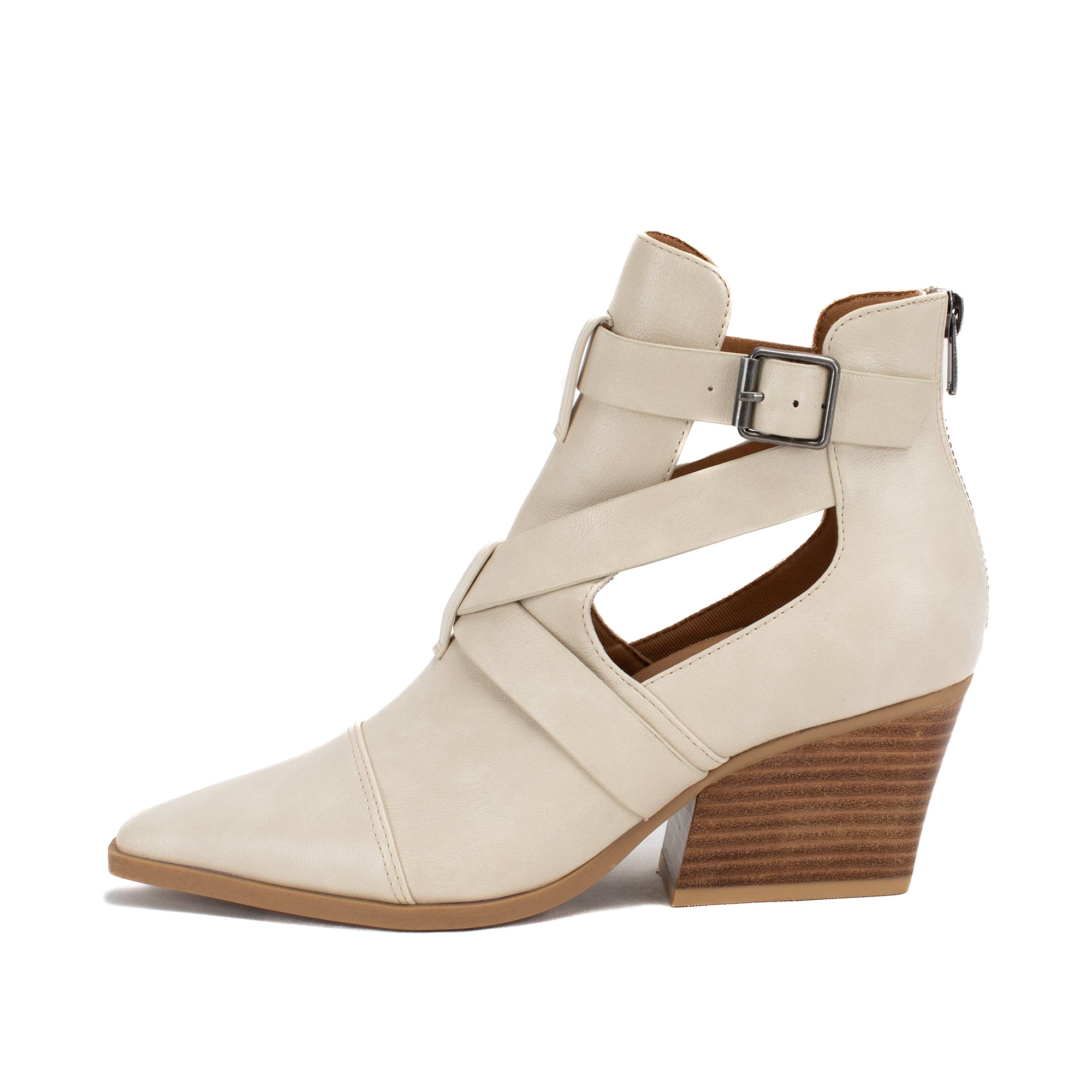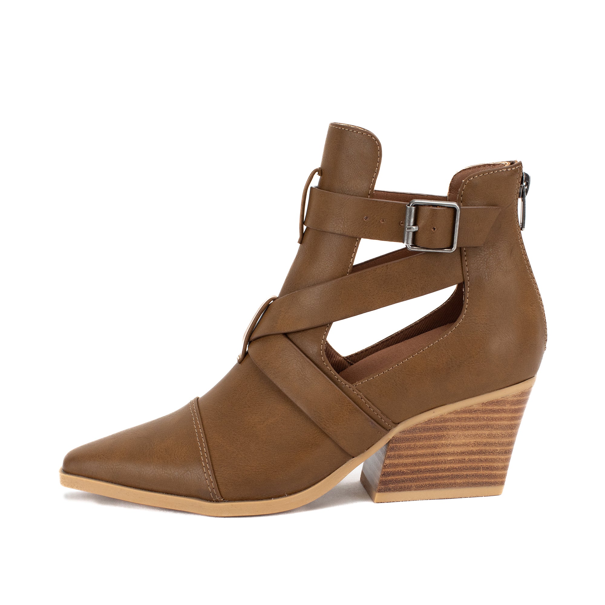 Update your shoe closet in these strappy booties. This cut-out style also features our contoured insole that cups your foot with a mild arch support.