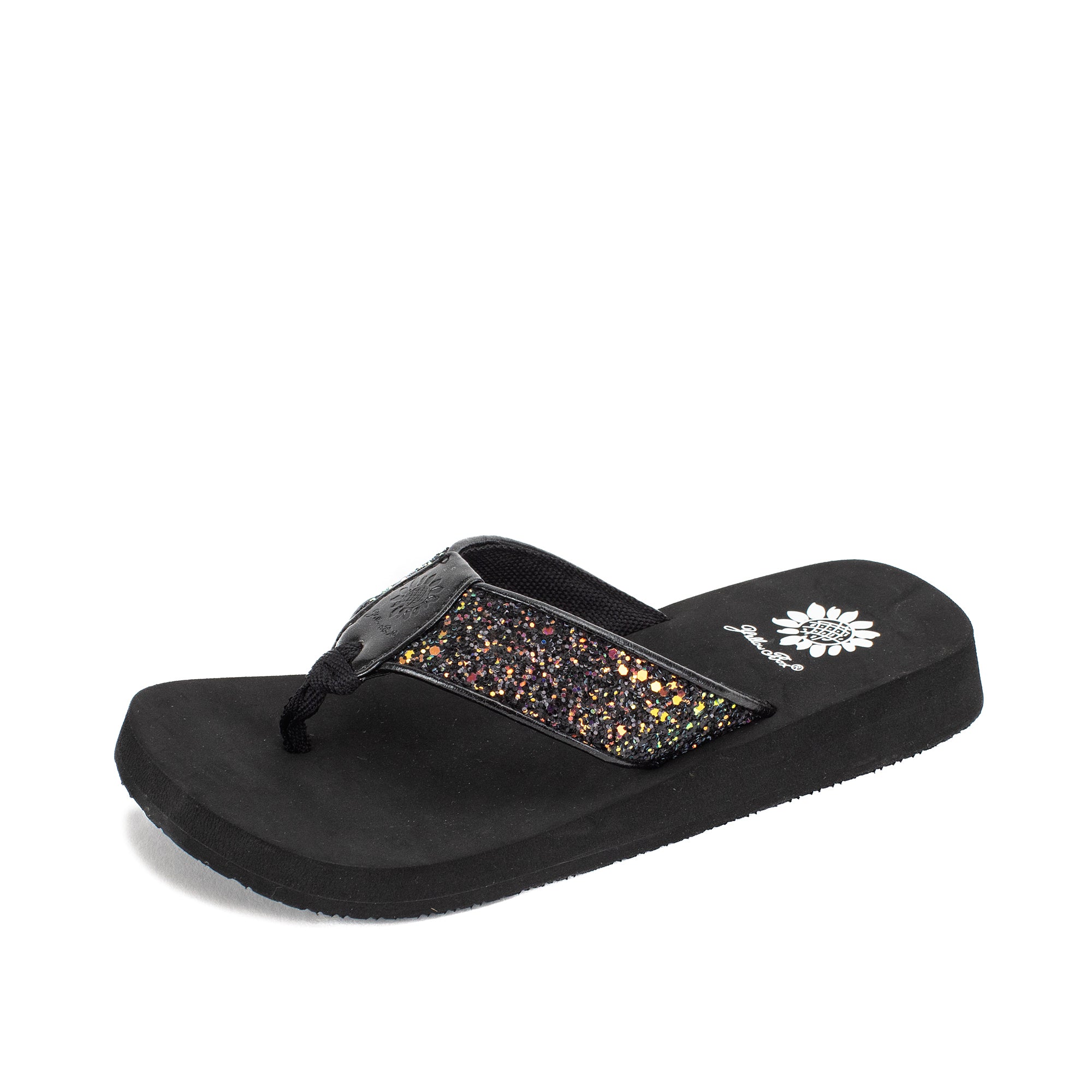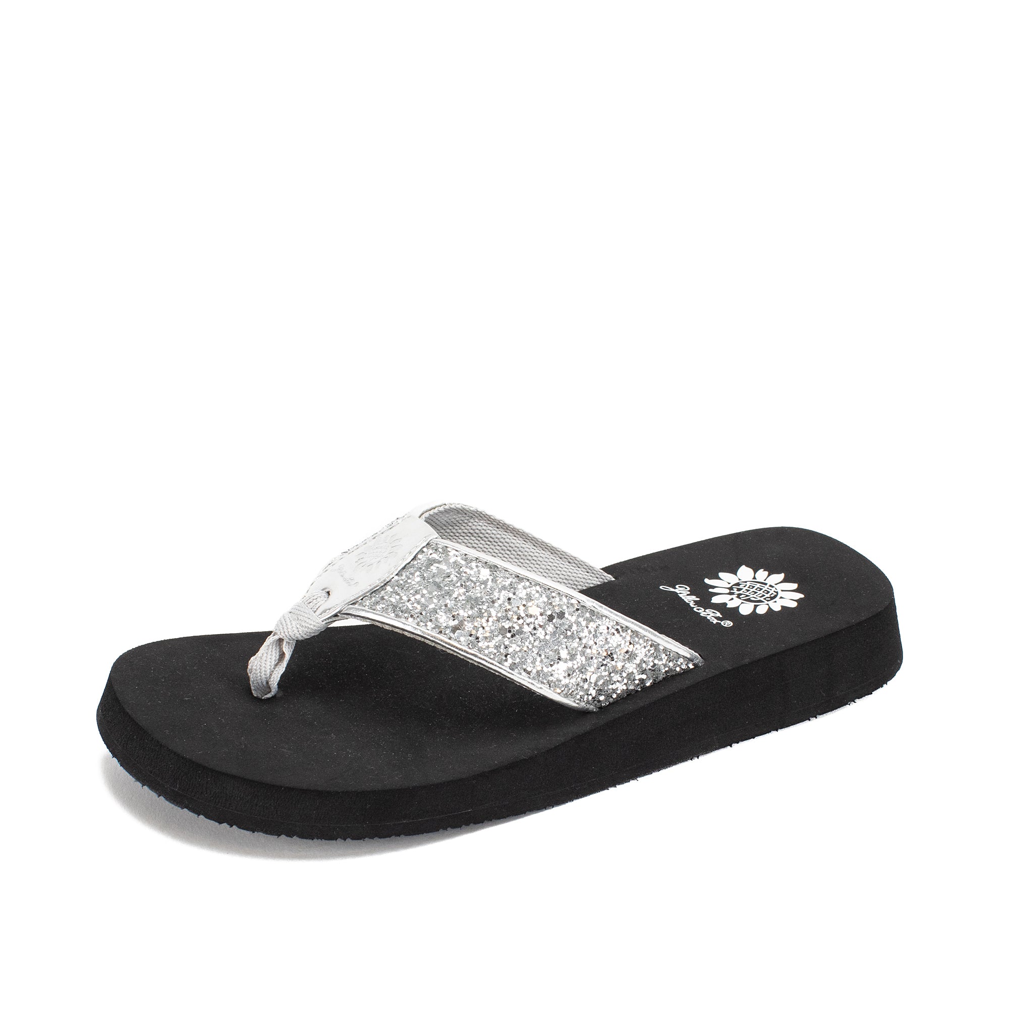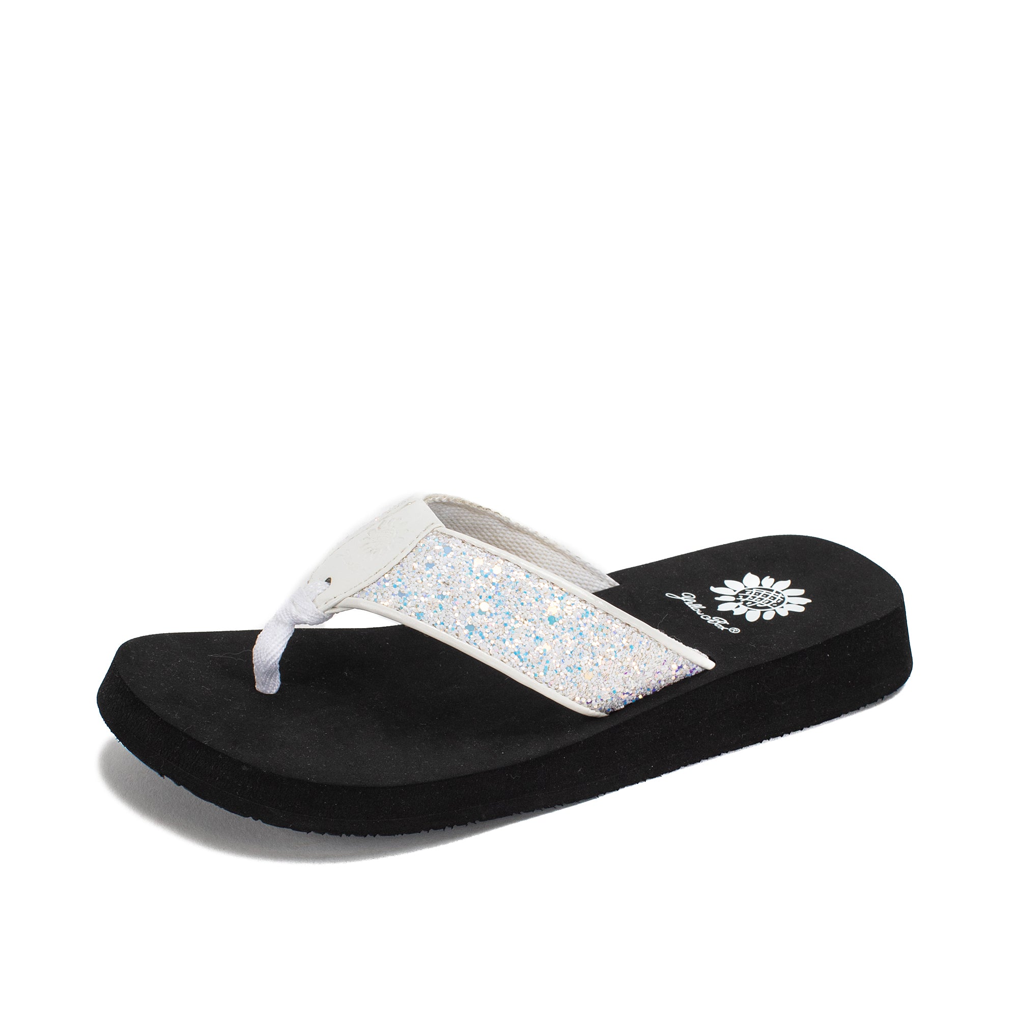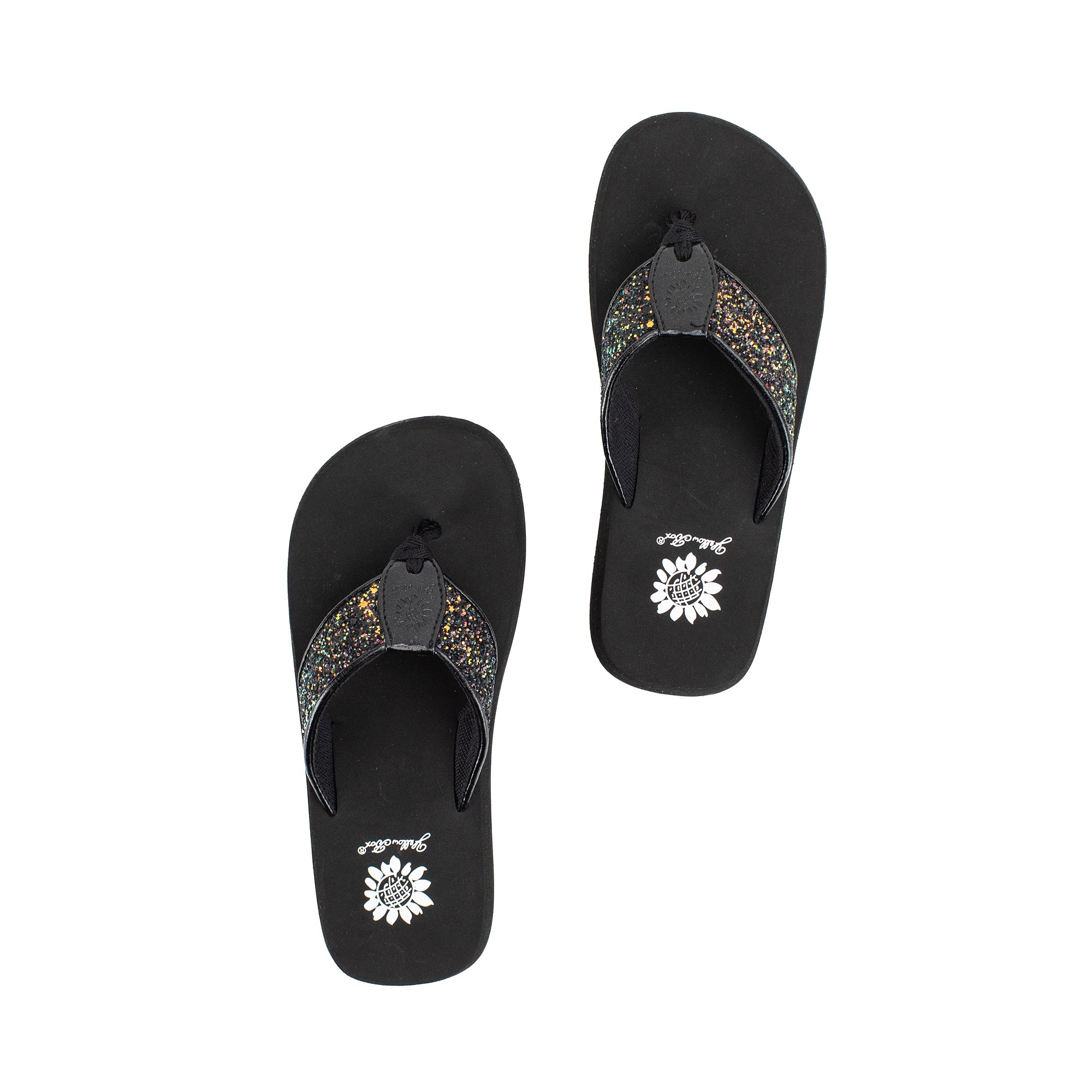 Covered in glitters, the upper creates a glimmering effect that can catch all eyes. While the EVA foam foot bed provides walking comfort.