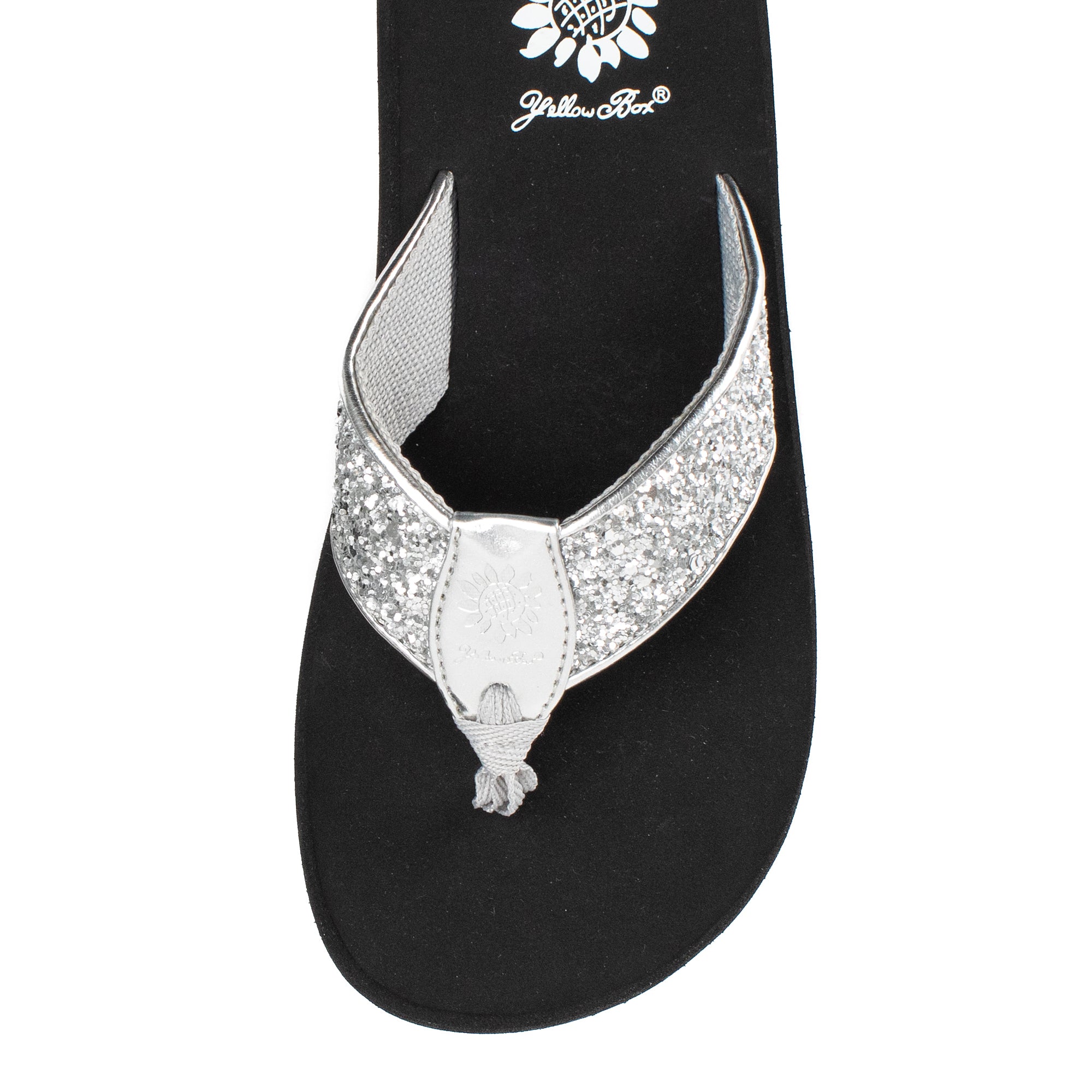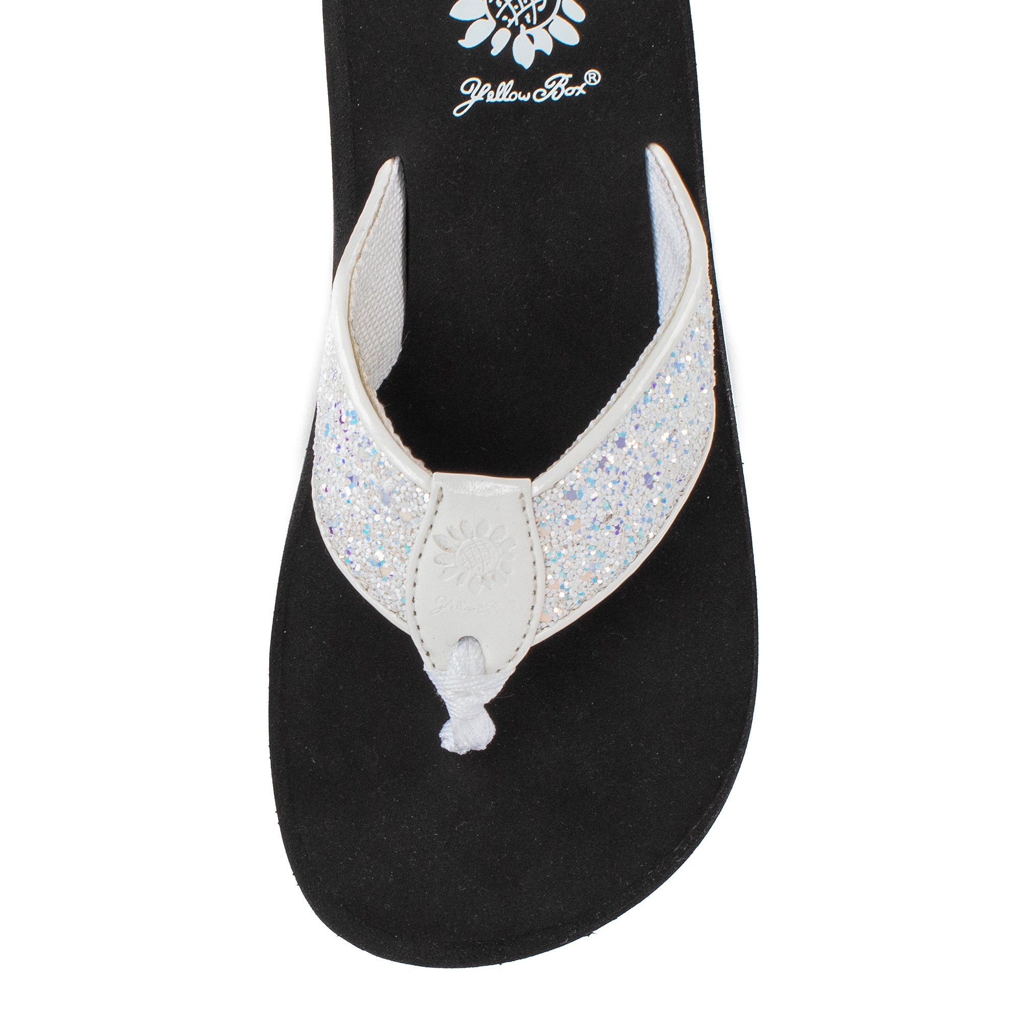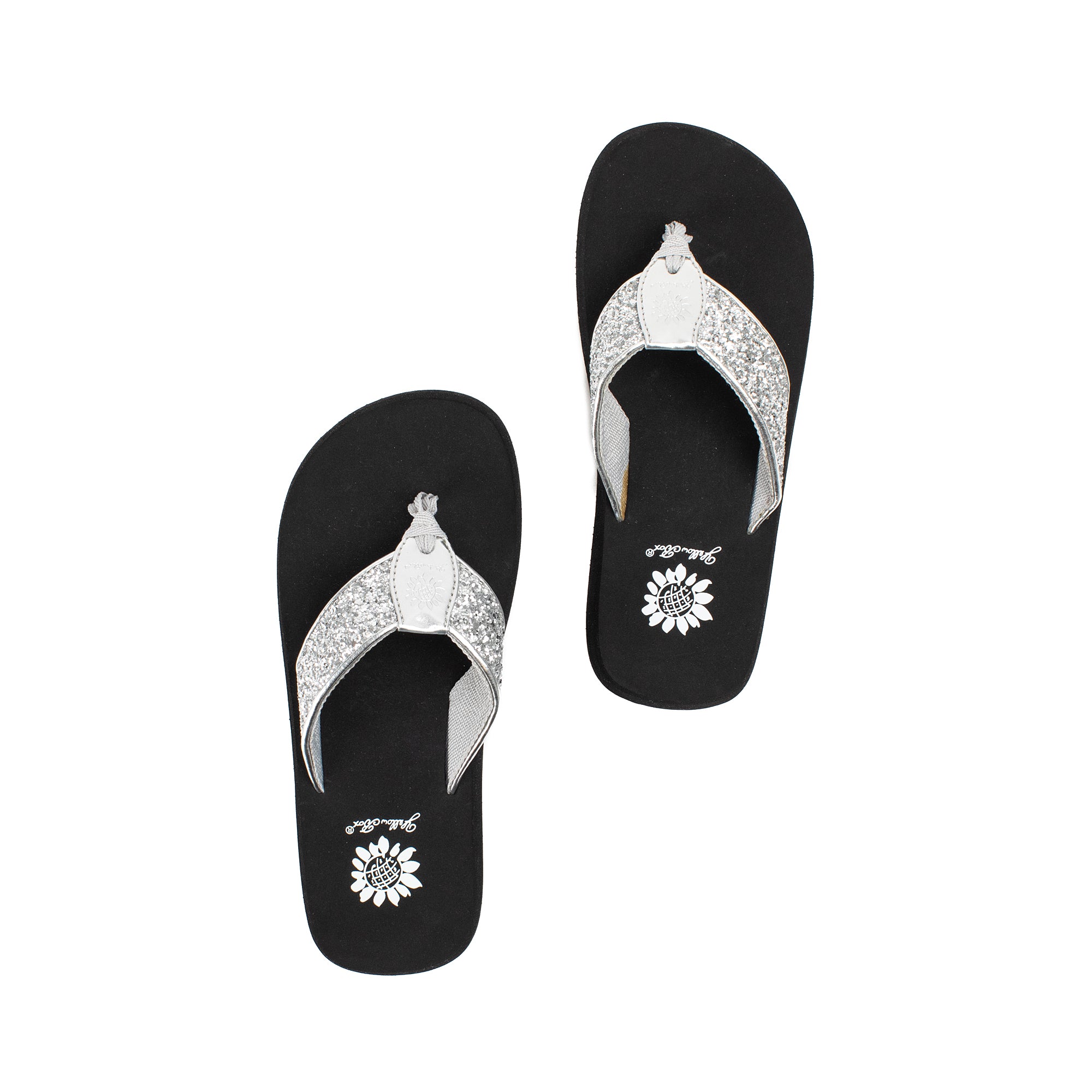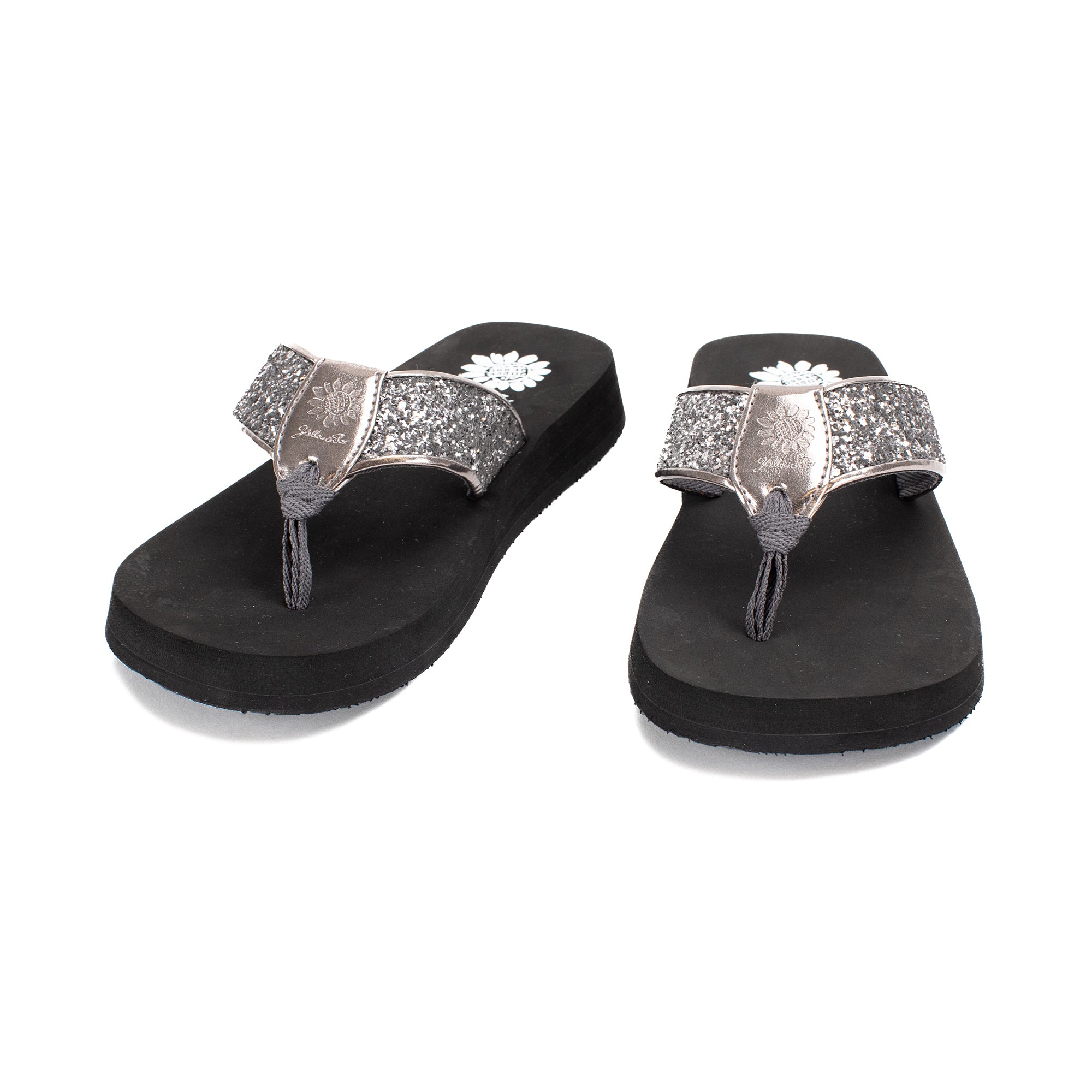 Covered in glitters, the upper creates a glimmering effect that can catch all eyes. While the EVA foam foot bed provides walking comfort.