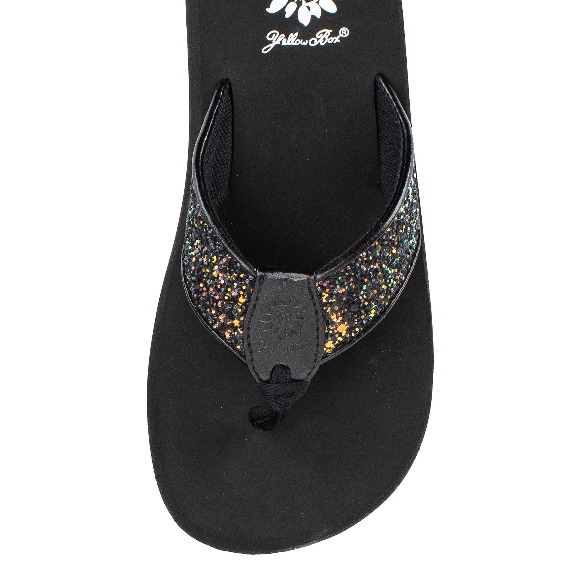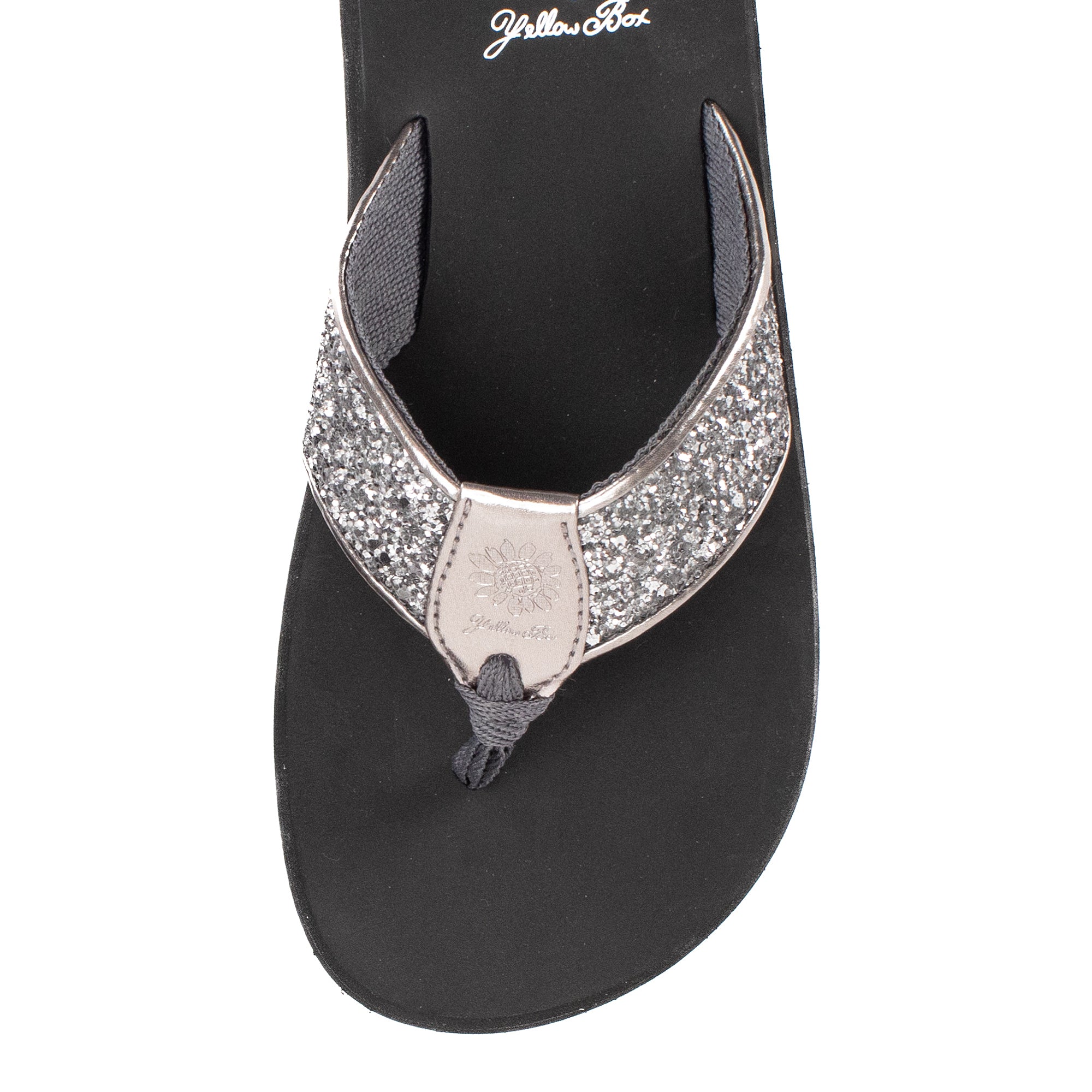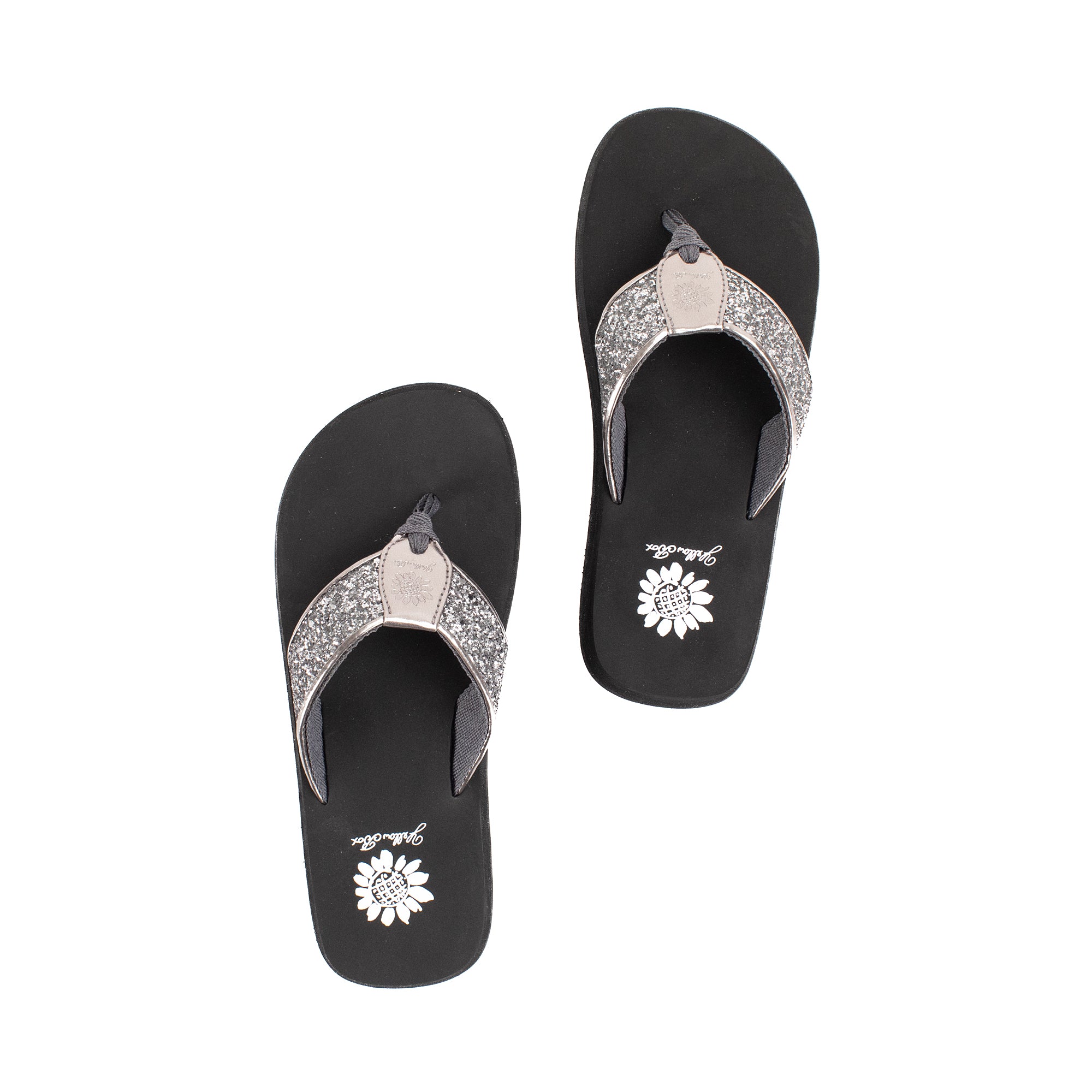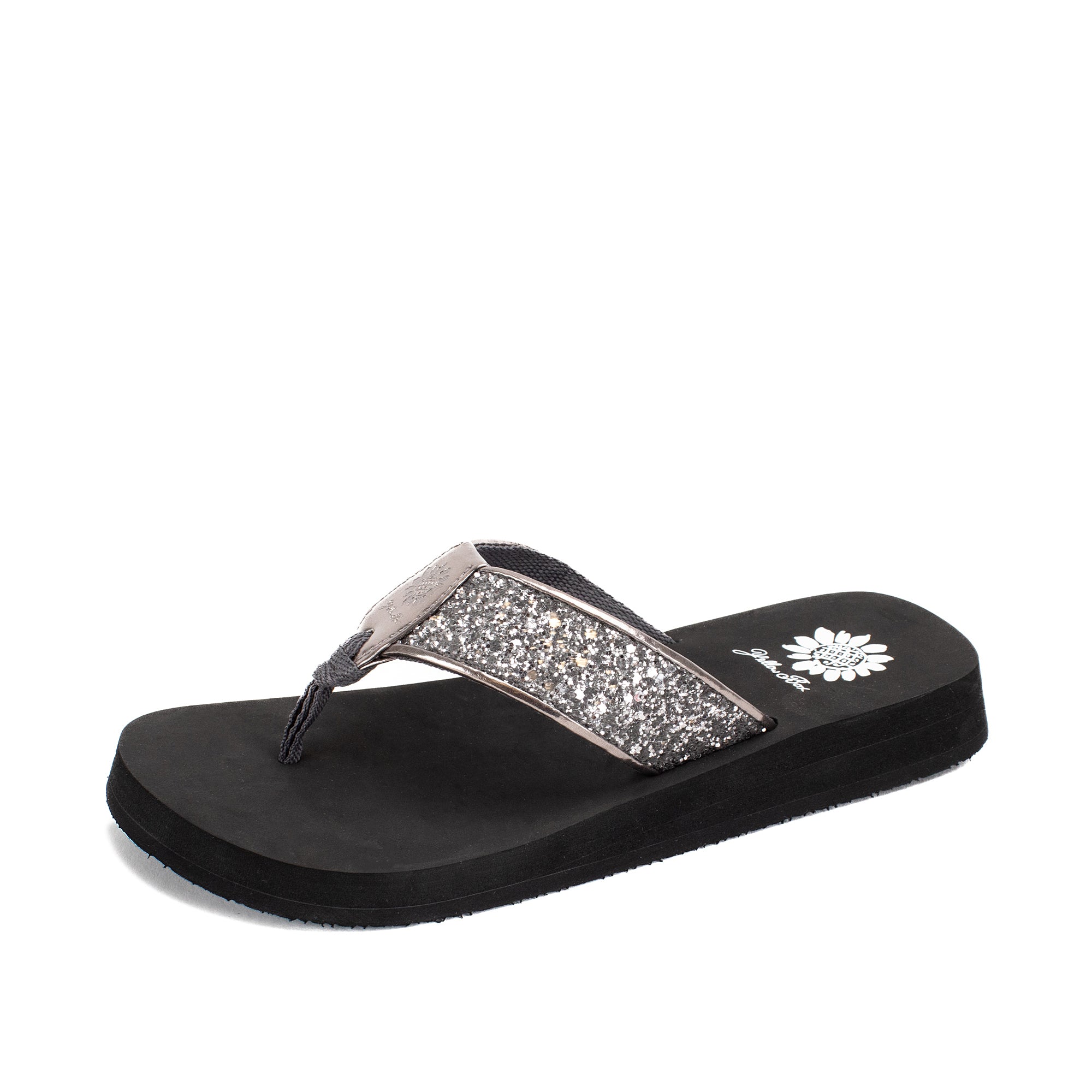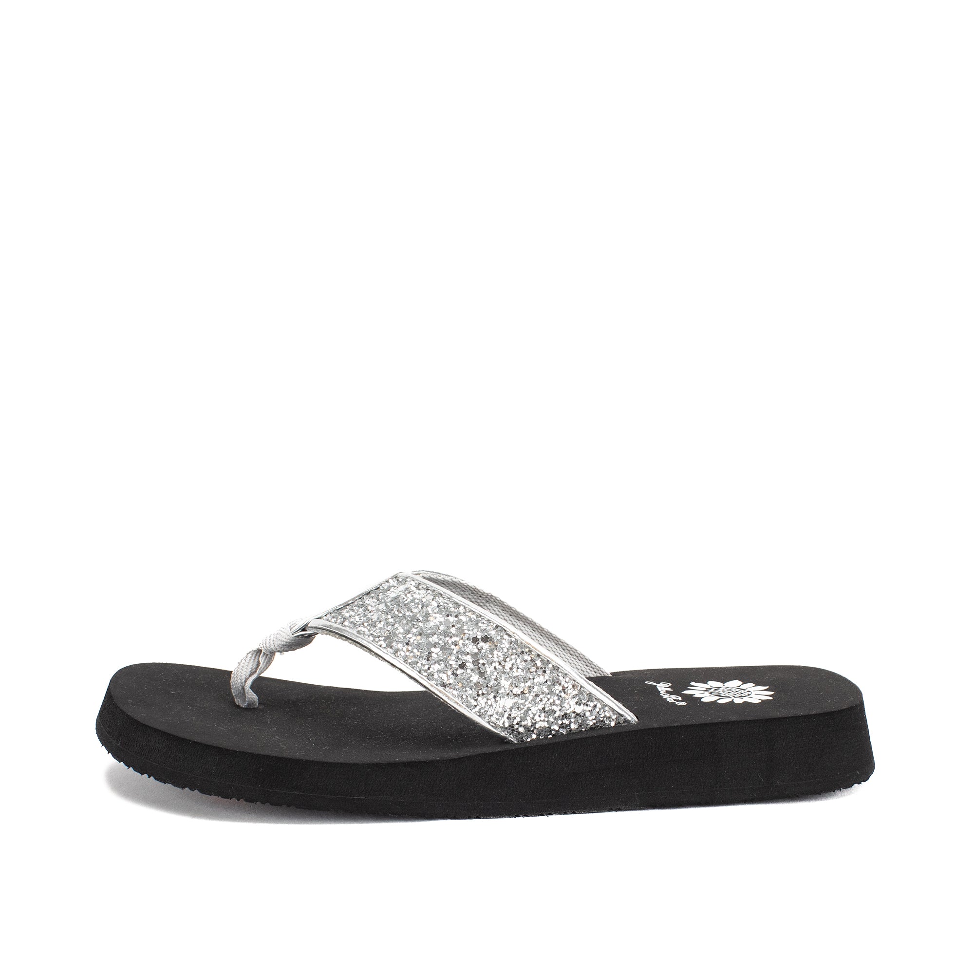 Covered in glitters, the upper creates a glimmering effect that can catch all eyes. While the EVA foam foot bed provides walking comfort.
