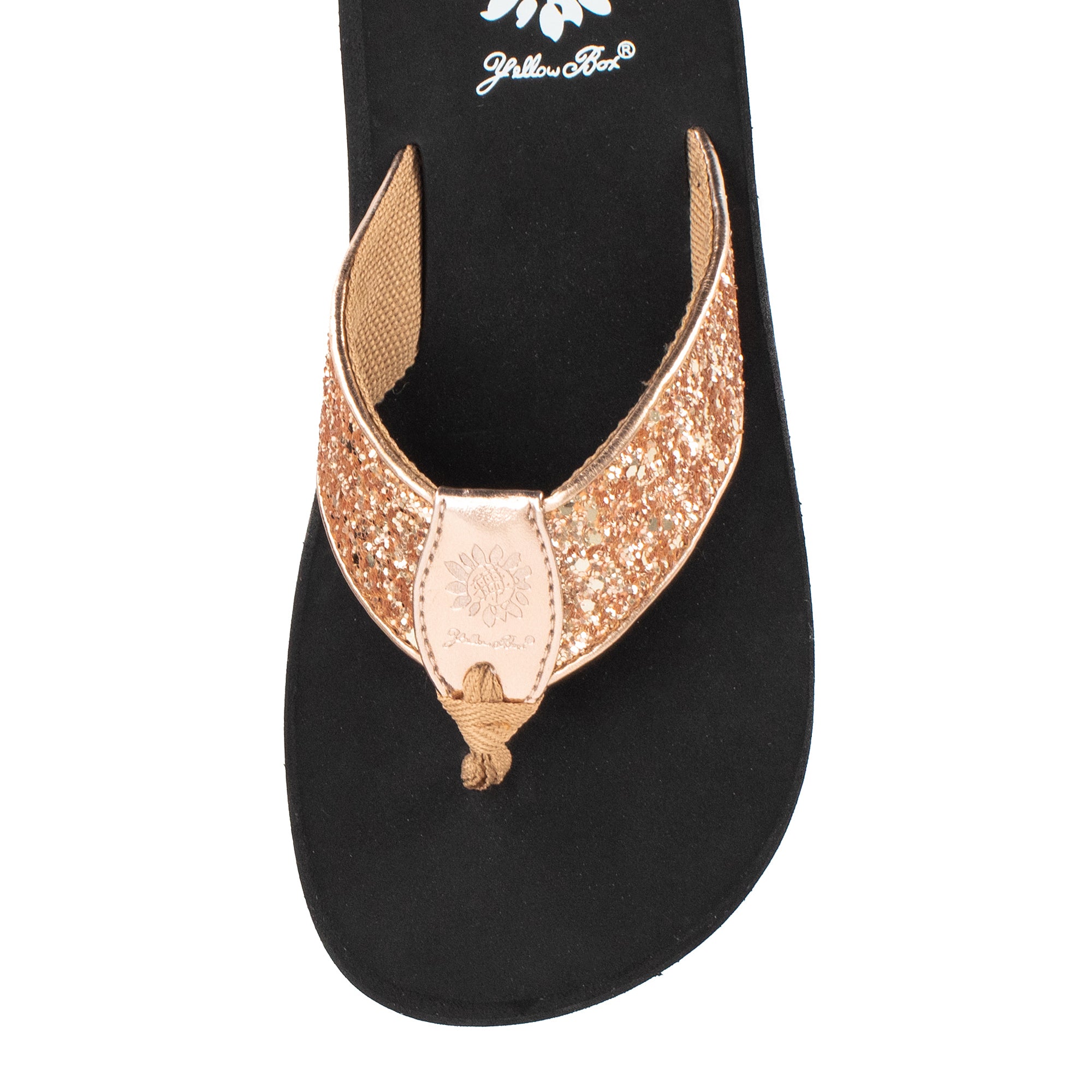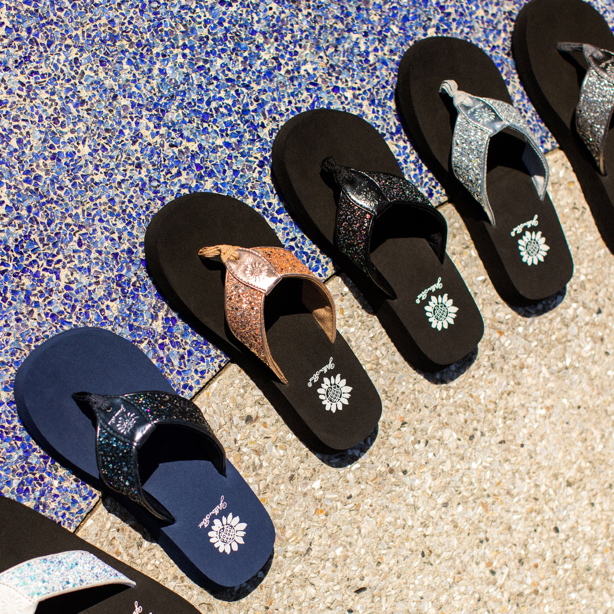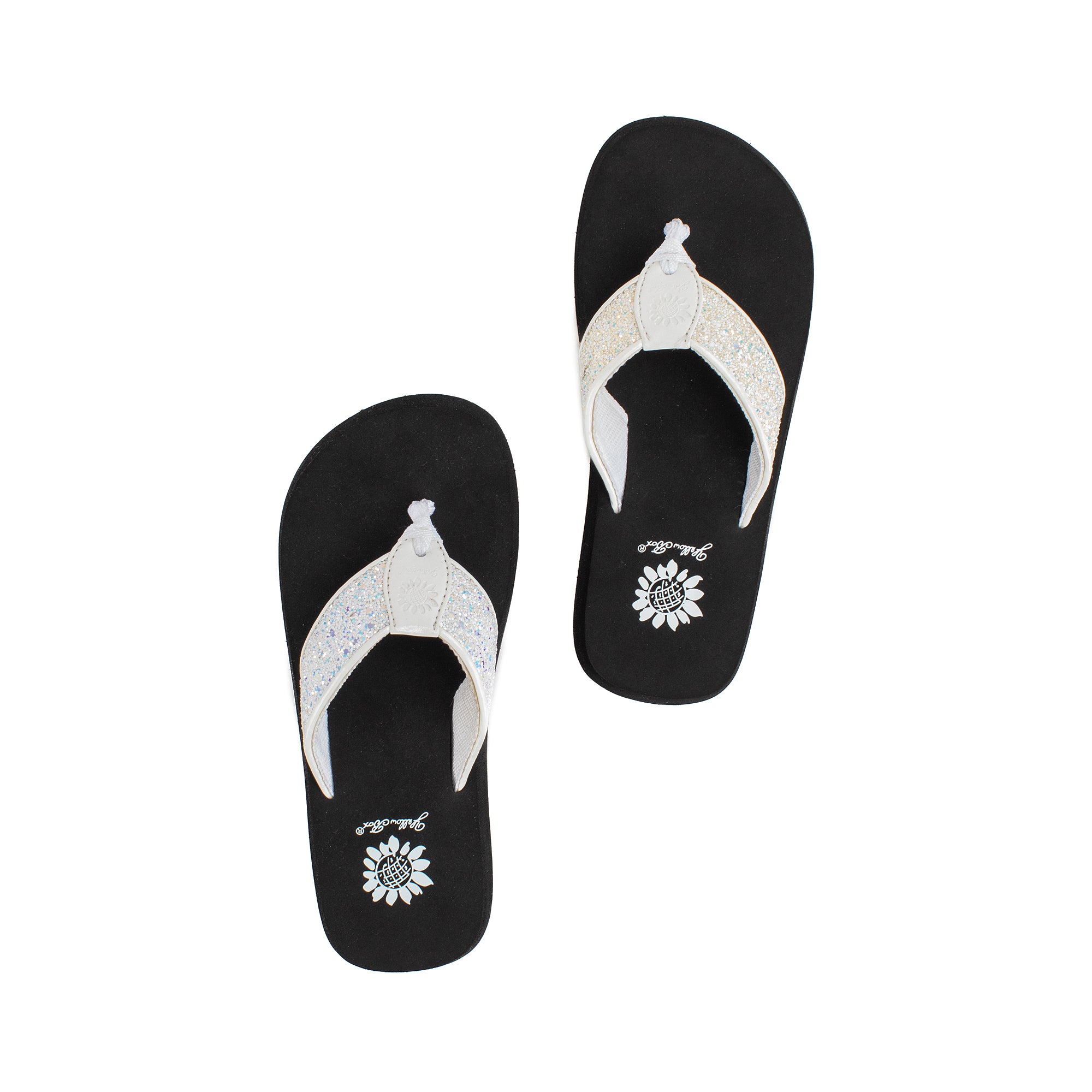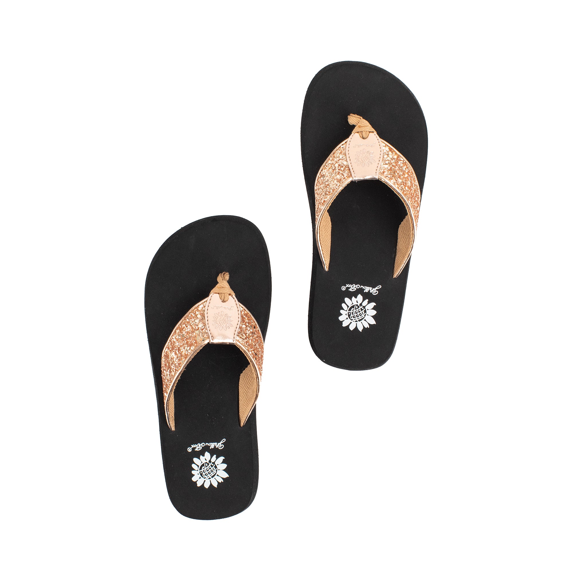 Covered in glitters, the upper creates a glimmering effect that can catch all eyes. While the EVA foam foot bed provides walking comfort.