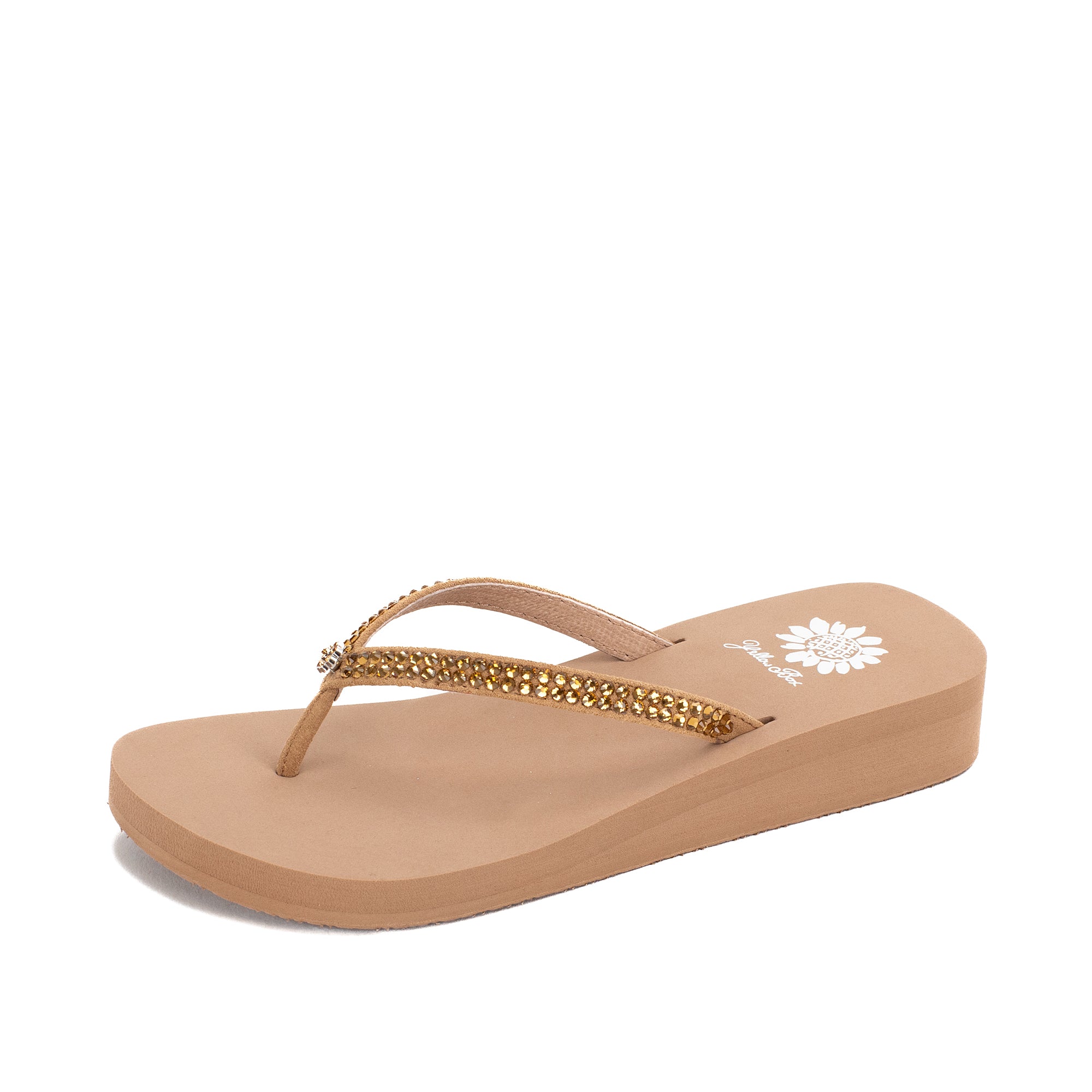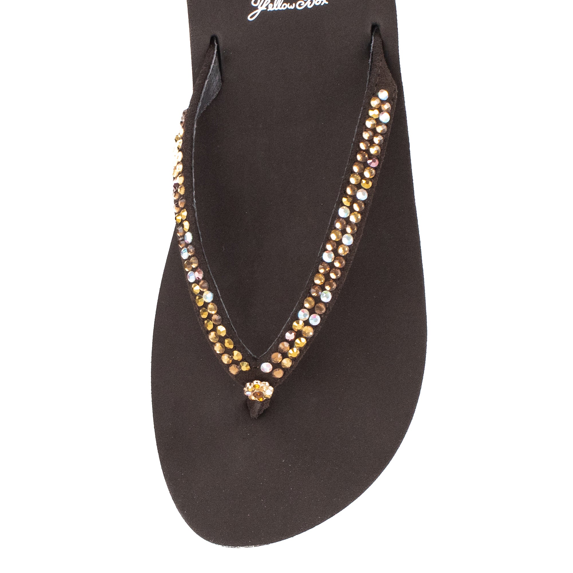 The JELLO sandal is well tuned to the needs and style of a woman who expects nothing less than perfection. The mini rhinestones add subtle shine to a stylish yet classic sandal. Our signature Yellow Box EVA footbed will provide you with all-day support and comfort.