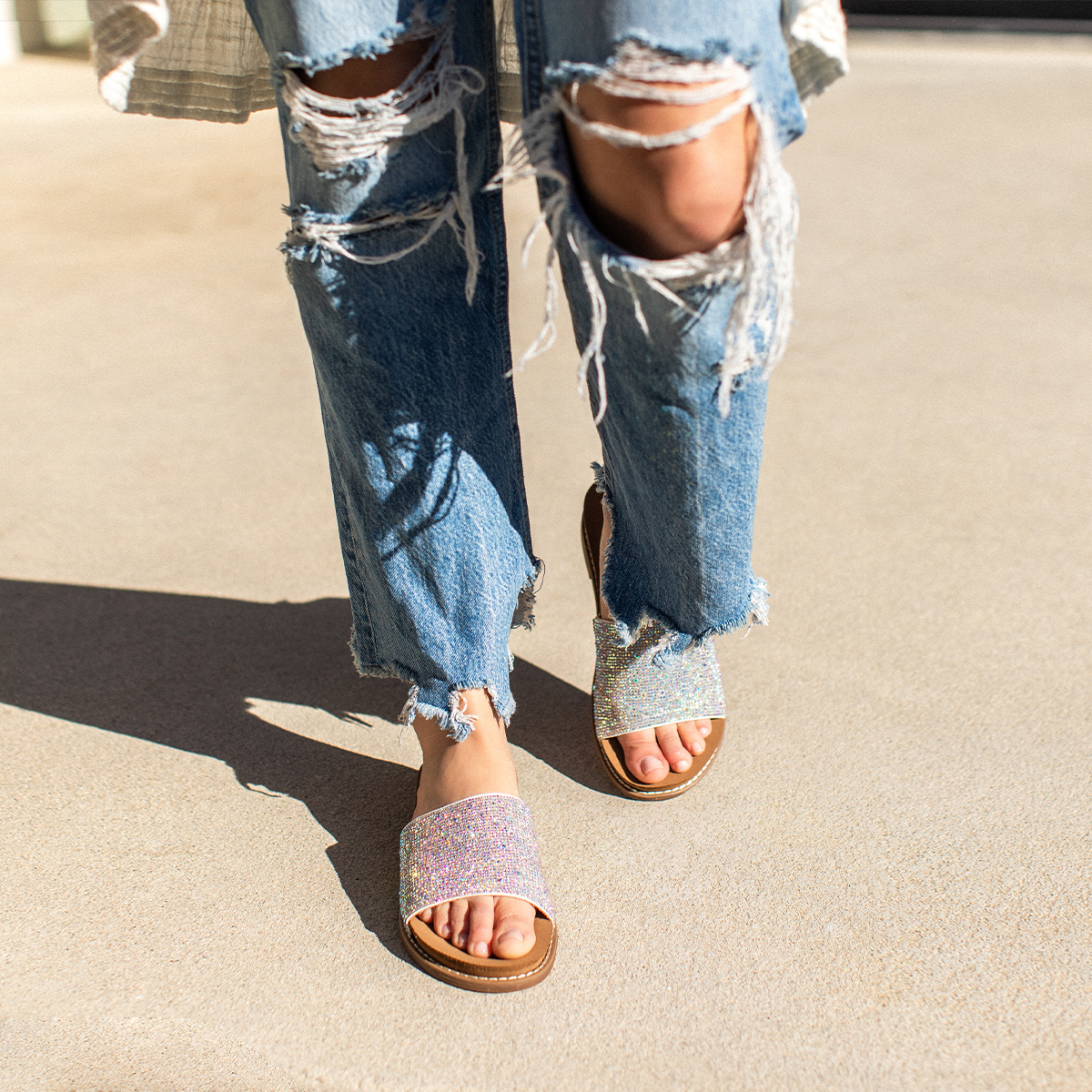 The KITE slide sandal is the pinnacle of form and function. Embellished with dazzling rhinestones and cushioned for optimal comfort, these sandals are guaranteed to capture everyone's attention anywhere you go.