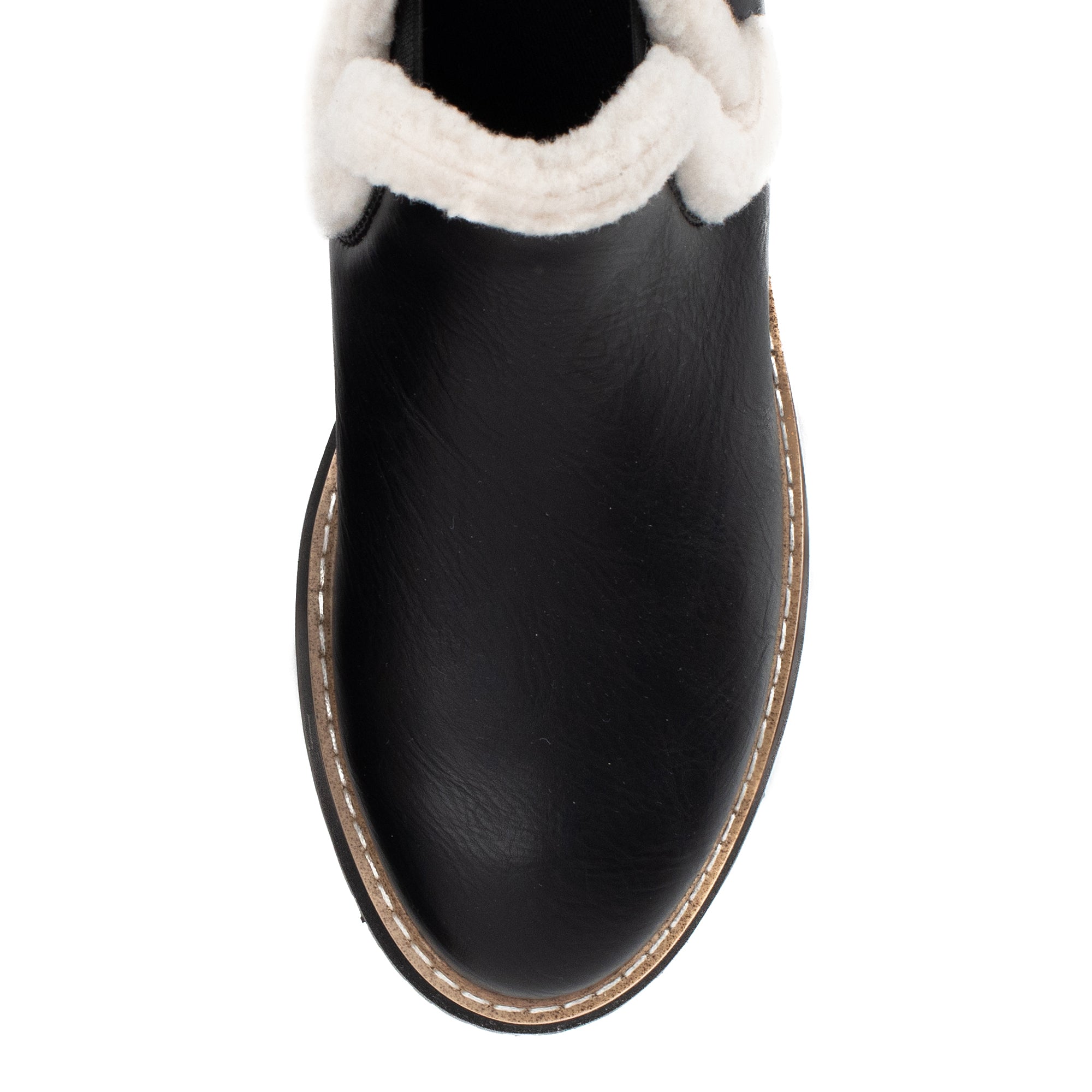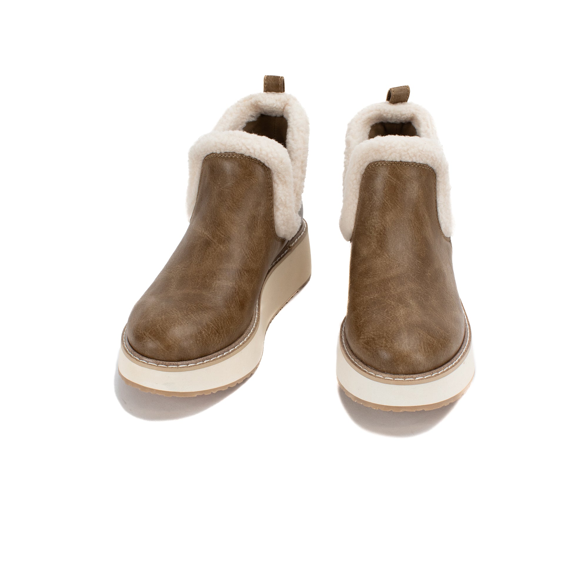 Add a bit of coziness with shearling collared booties